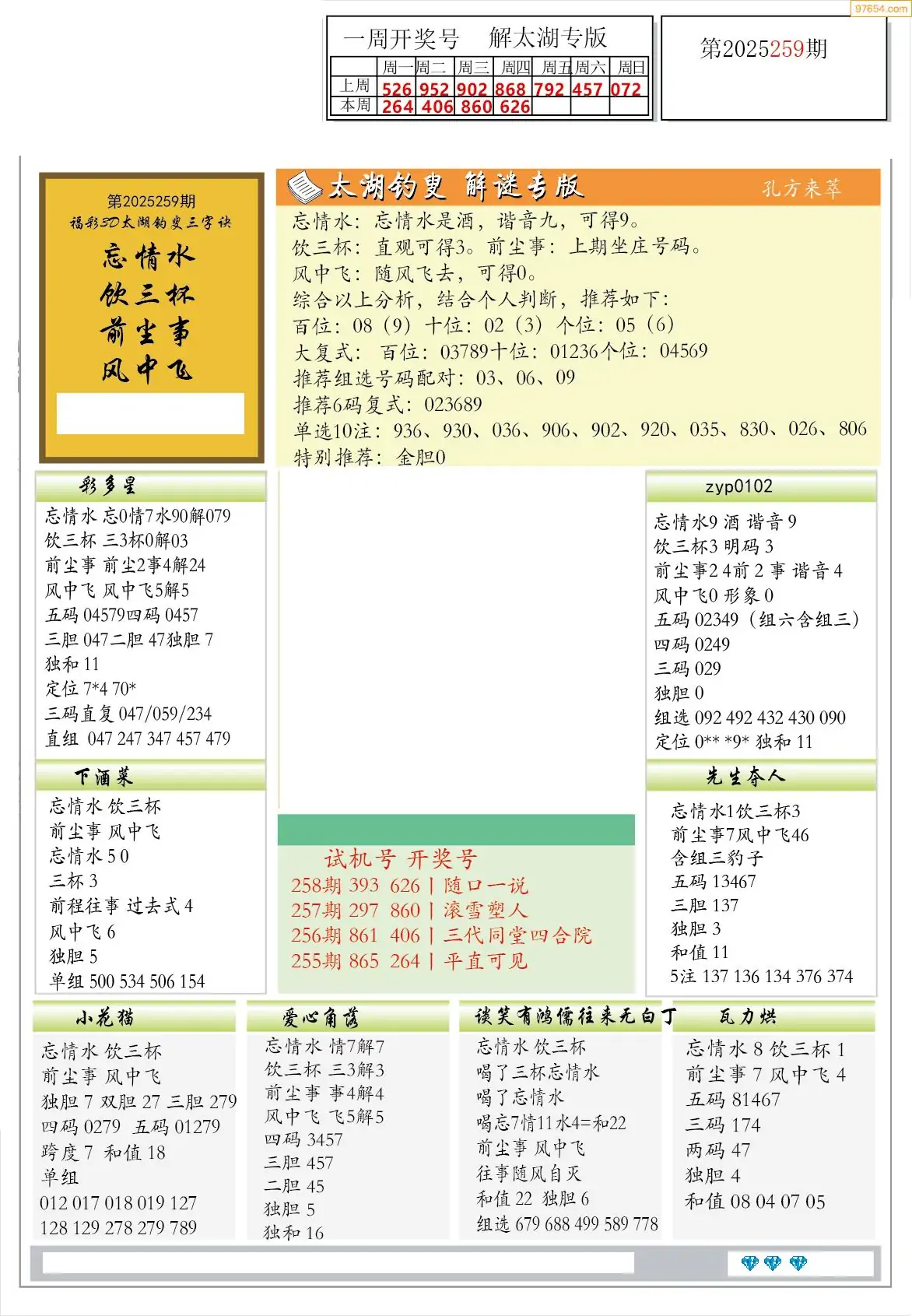 福彩3D264期天牛彩吧套图整合总汇
