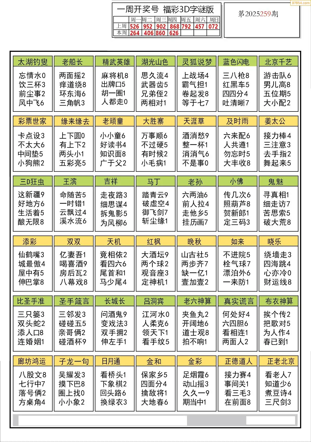 25264期3d童谣字图迷