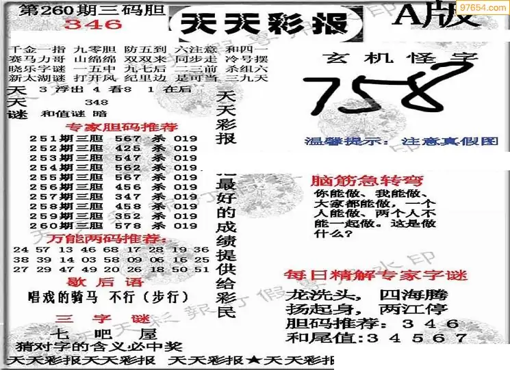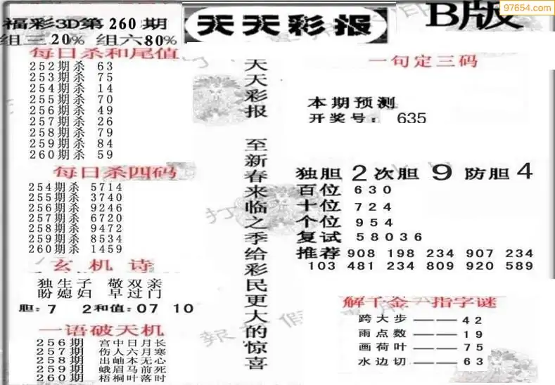 3D杀码 3D胆码 3D字谜 杀尾跨 试机号 藏机图 综合图 打印图 布衣图 胆码图 杀码图 实票欣赏 宝彩网 天中首页 天中APP