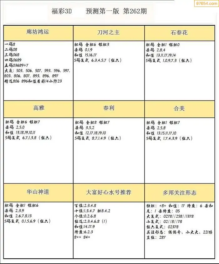 福彩3D264期天牛彩吧套图整合总汇