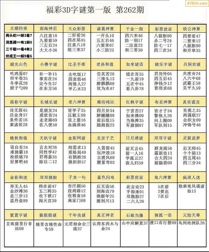 25262期3D天中原创预测字谜报