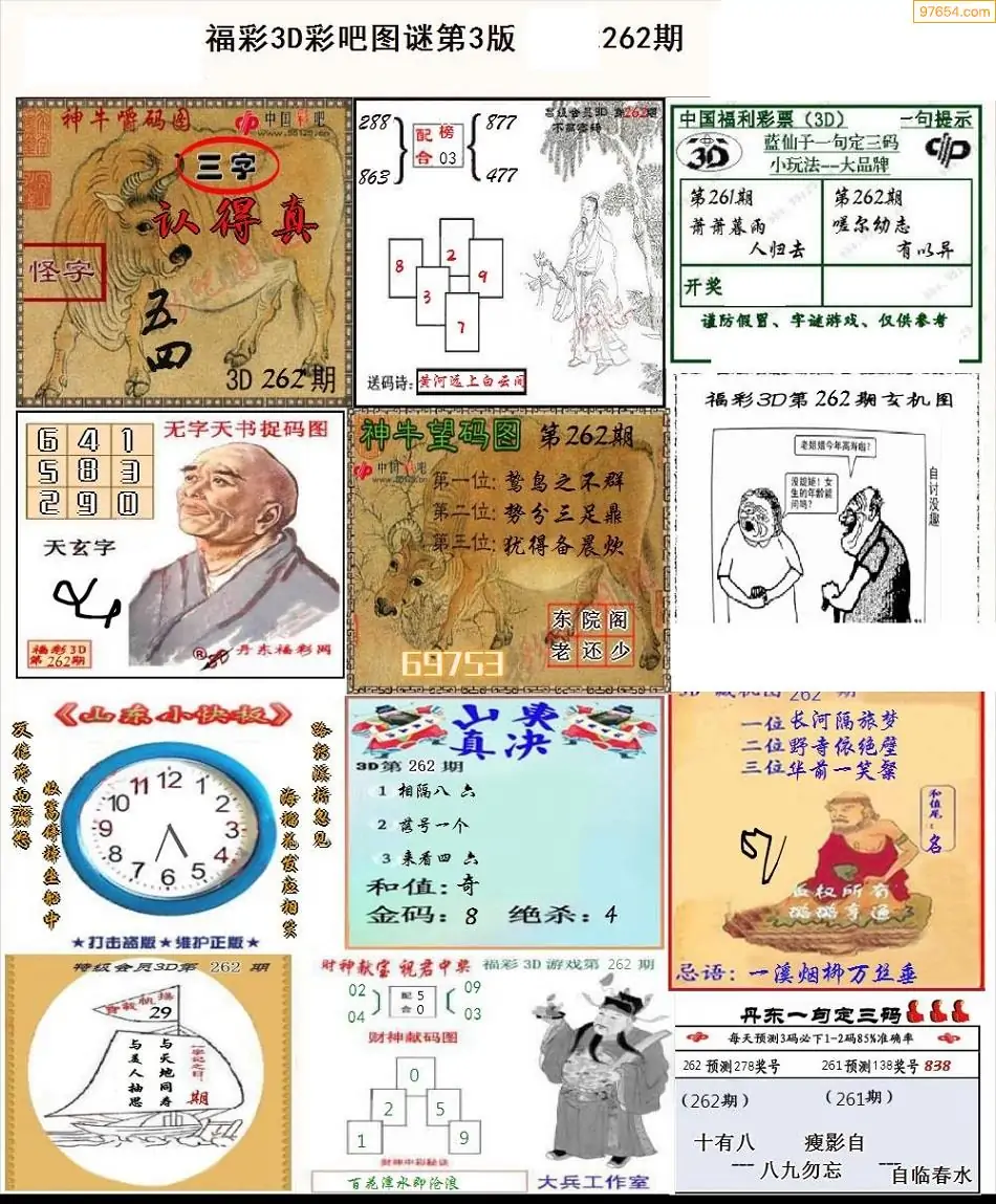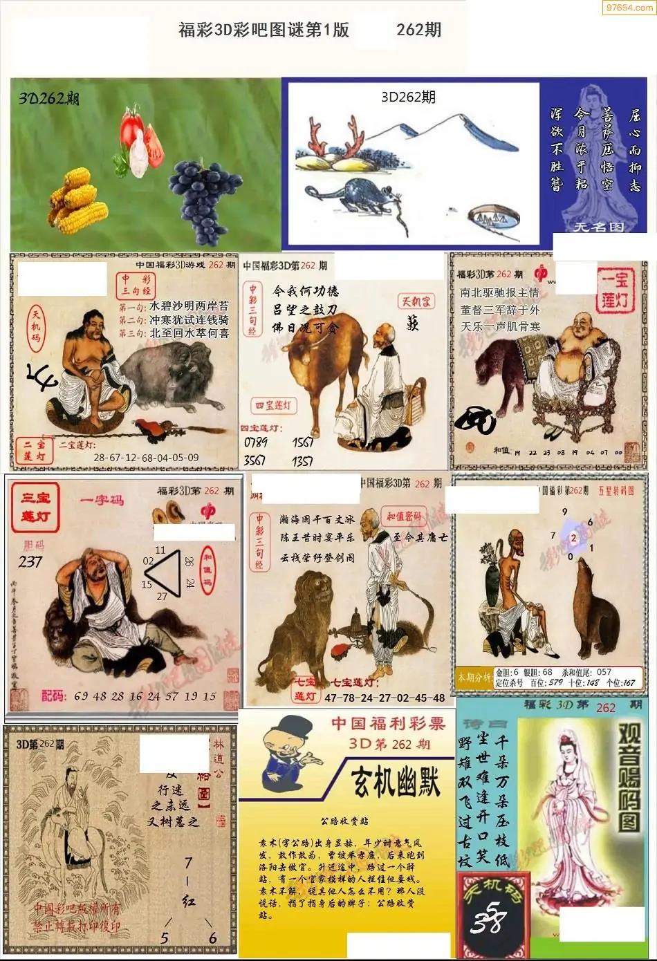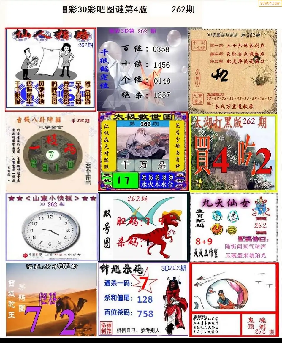 福彩3D262期天牛彩吧套图整合总汇
