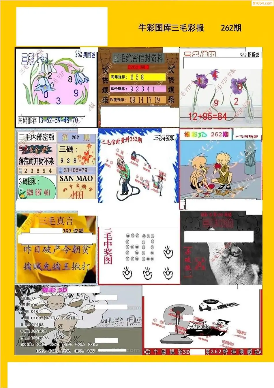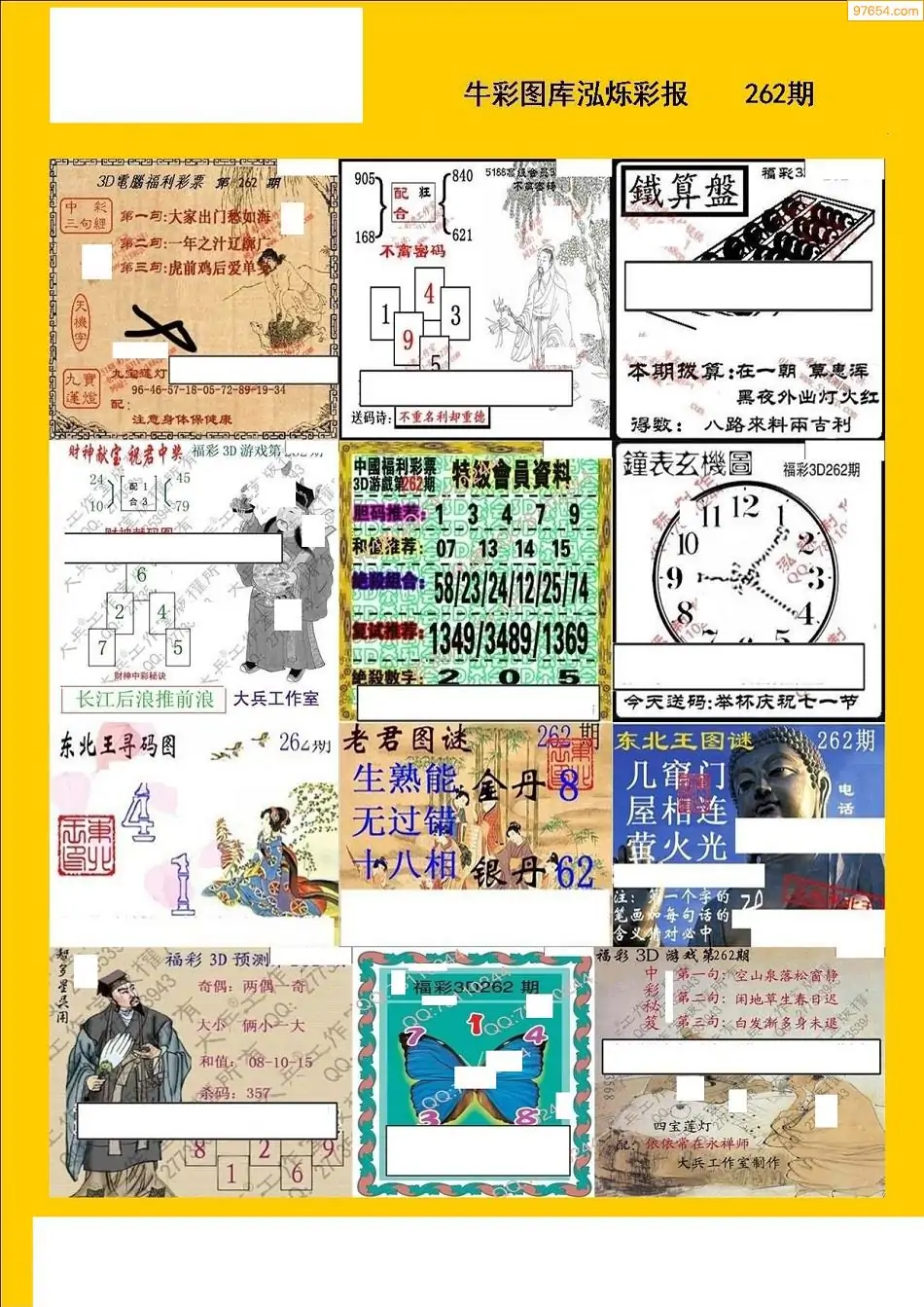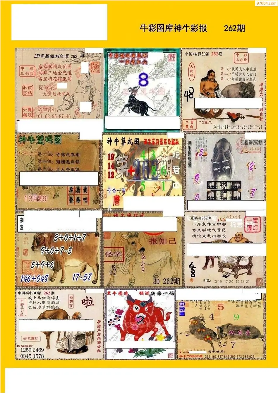 福彩3D262期天牛彩吧套图整合总汇