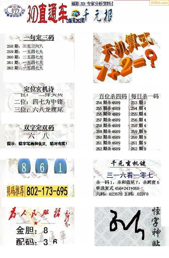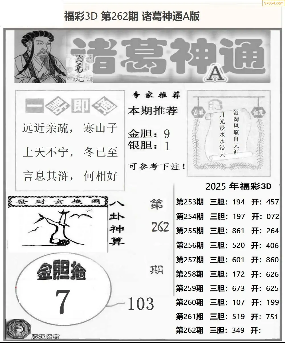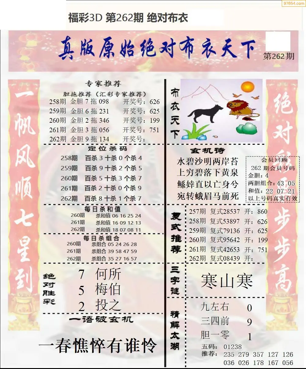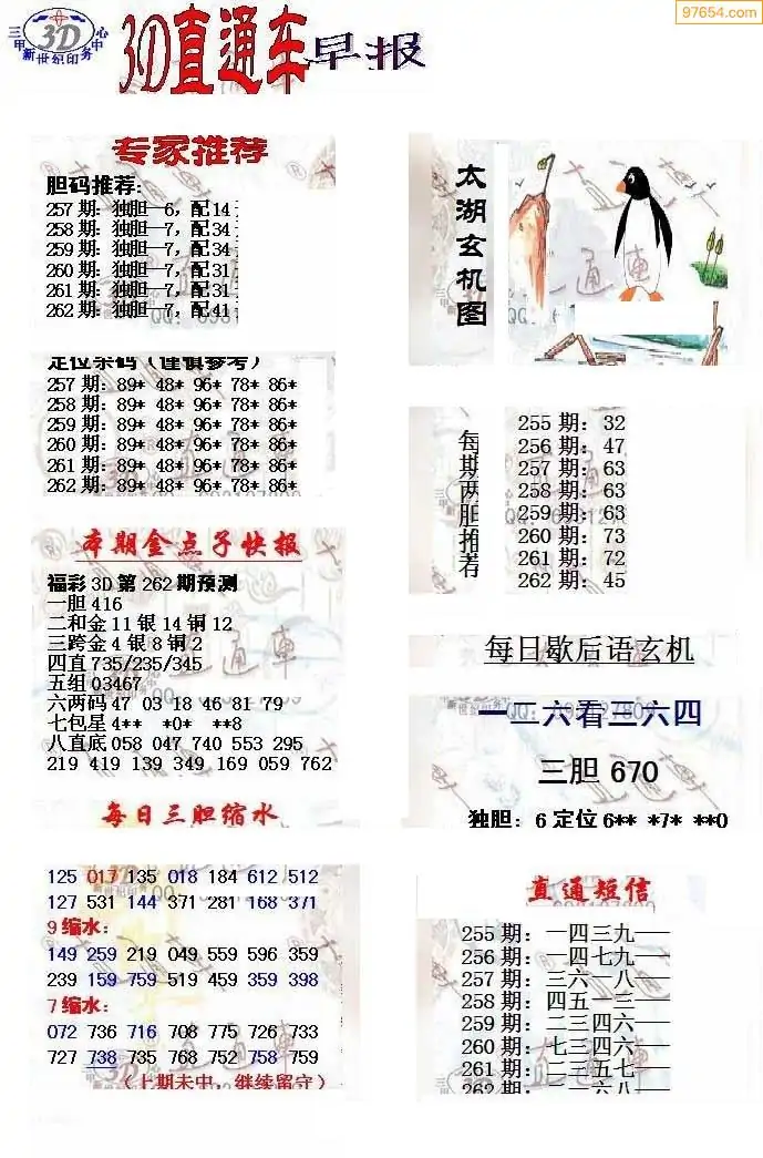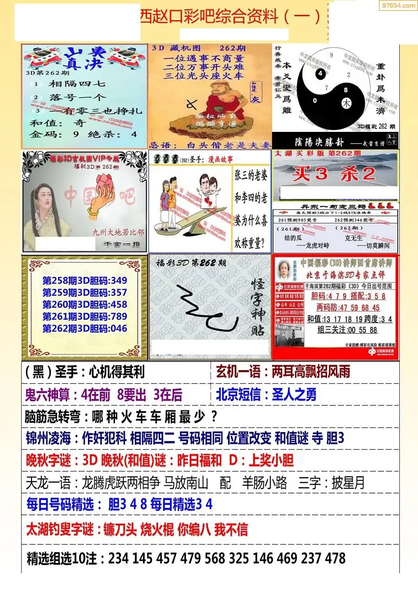 福彩3D264期天牛彩吧套图整合总汇