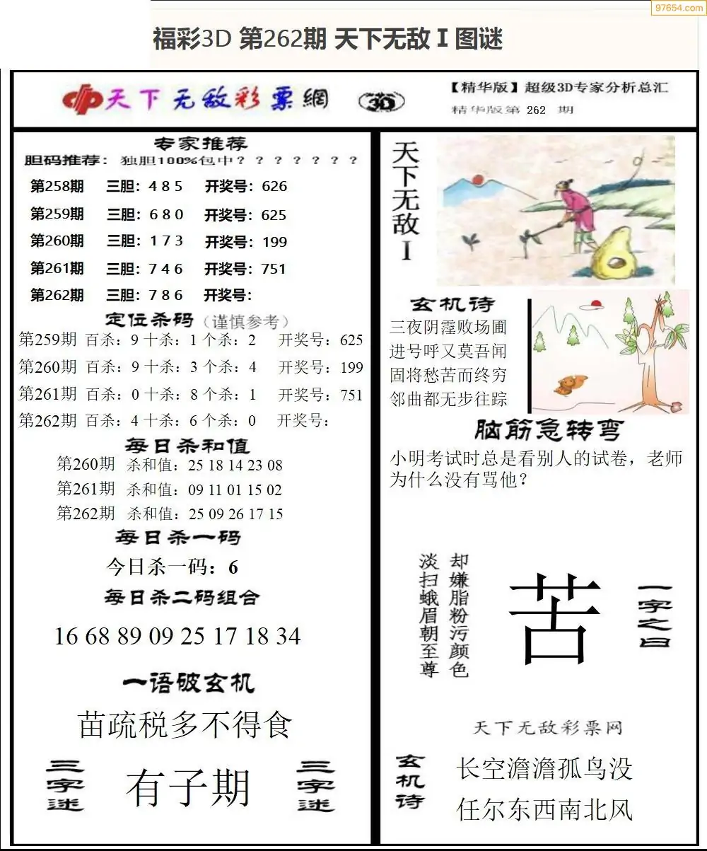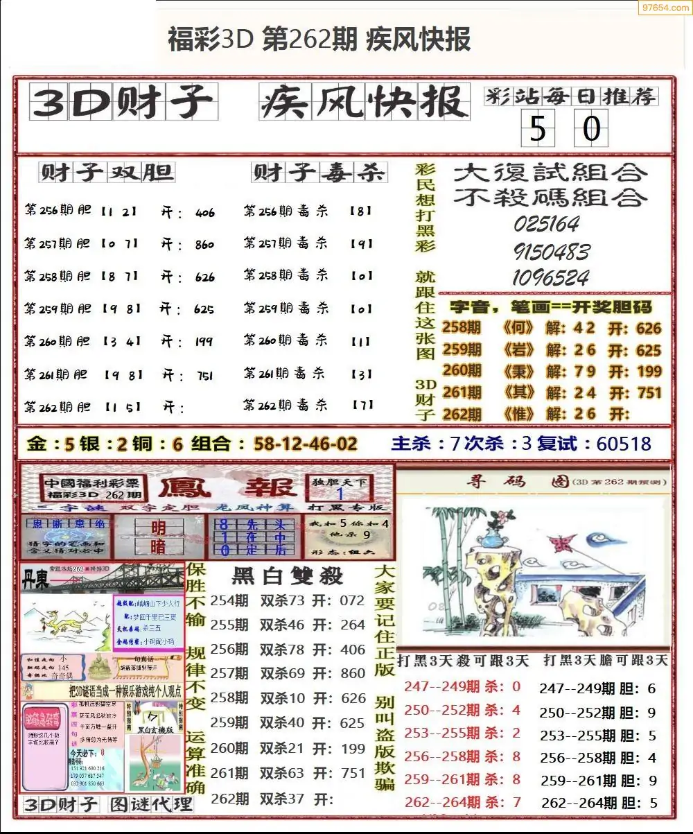 25年264期3d选号彩报图谜画谜