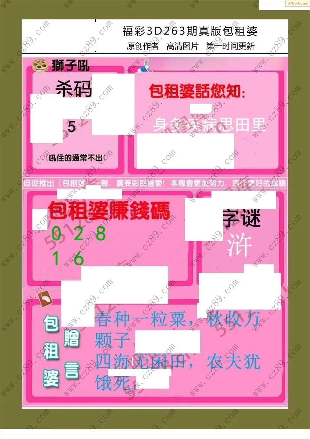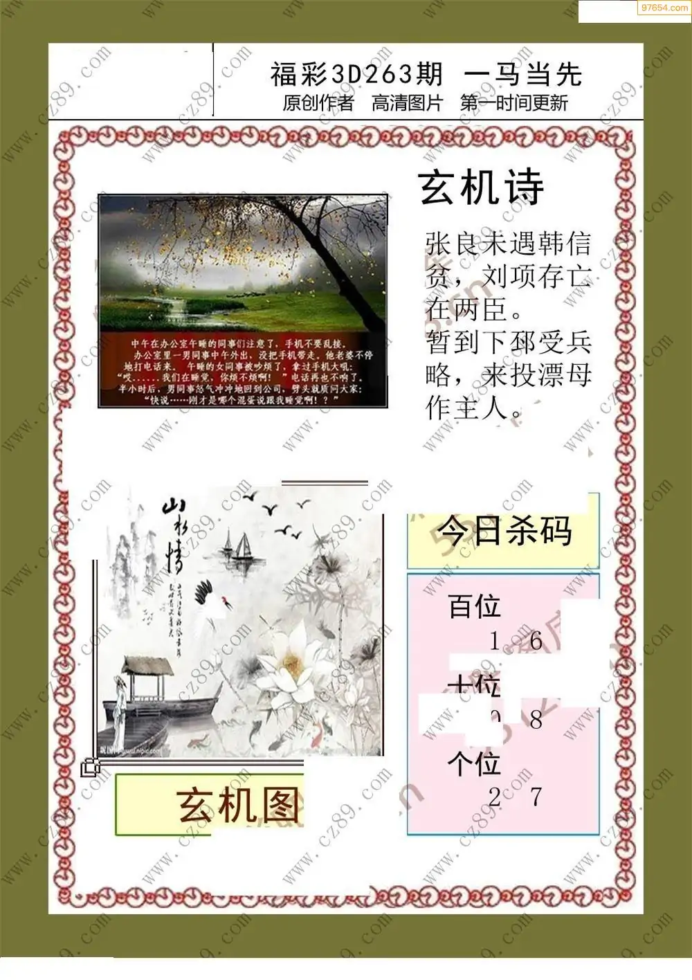 25年264期3d选号彩报图谜画谜