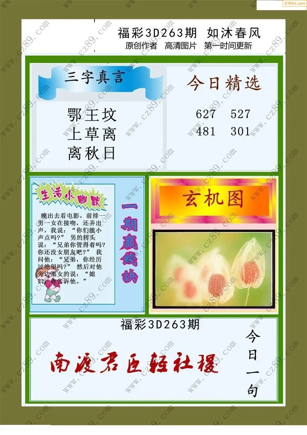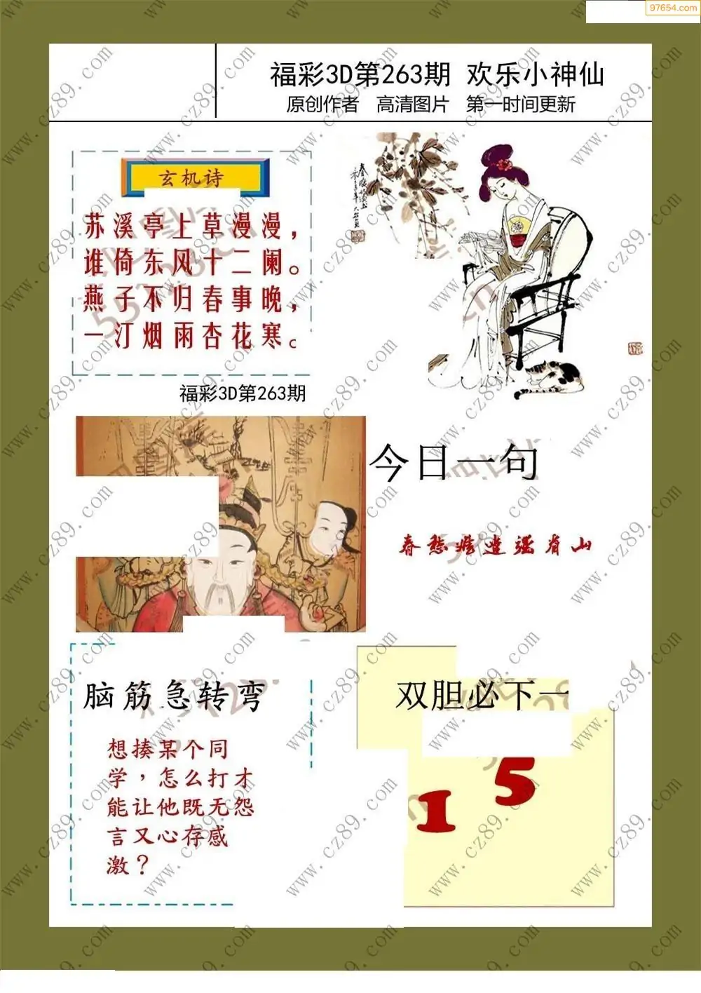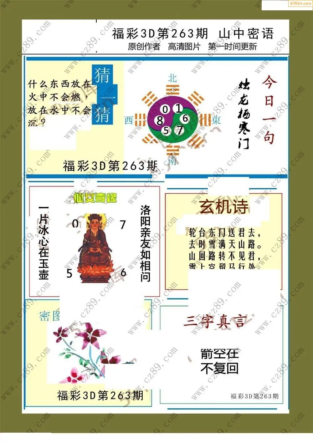 福彩3D25264期蓝仙子一句定三码图谜