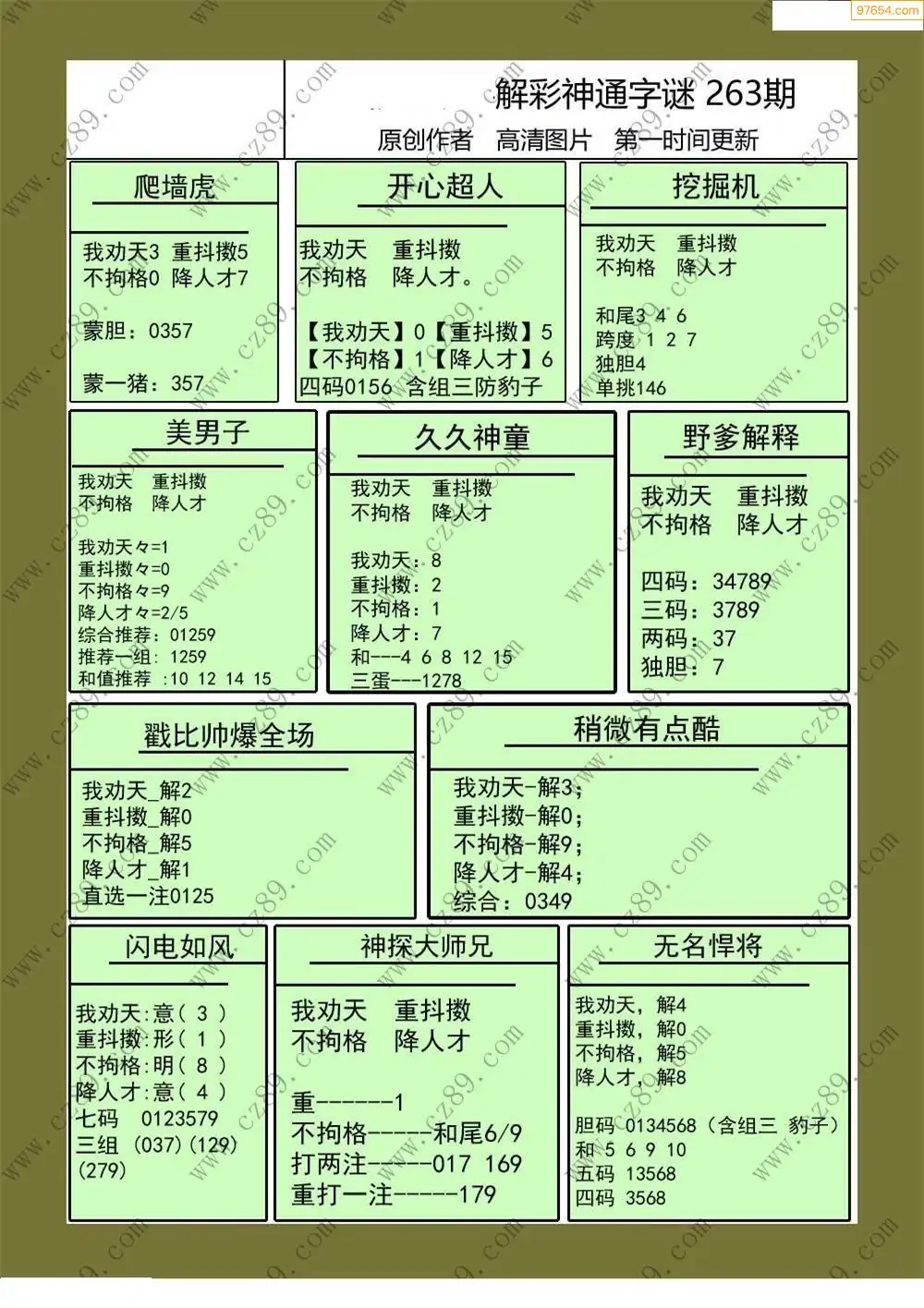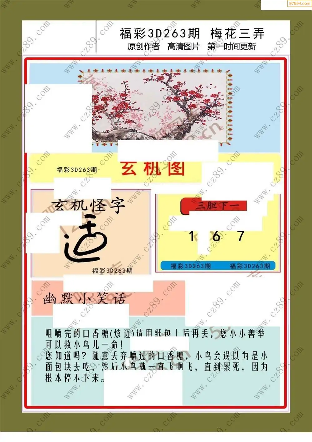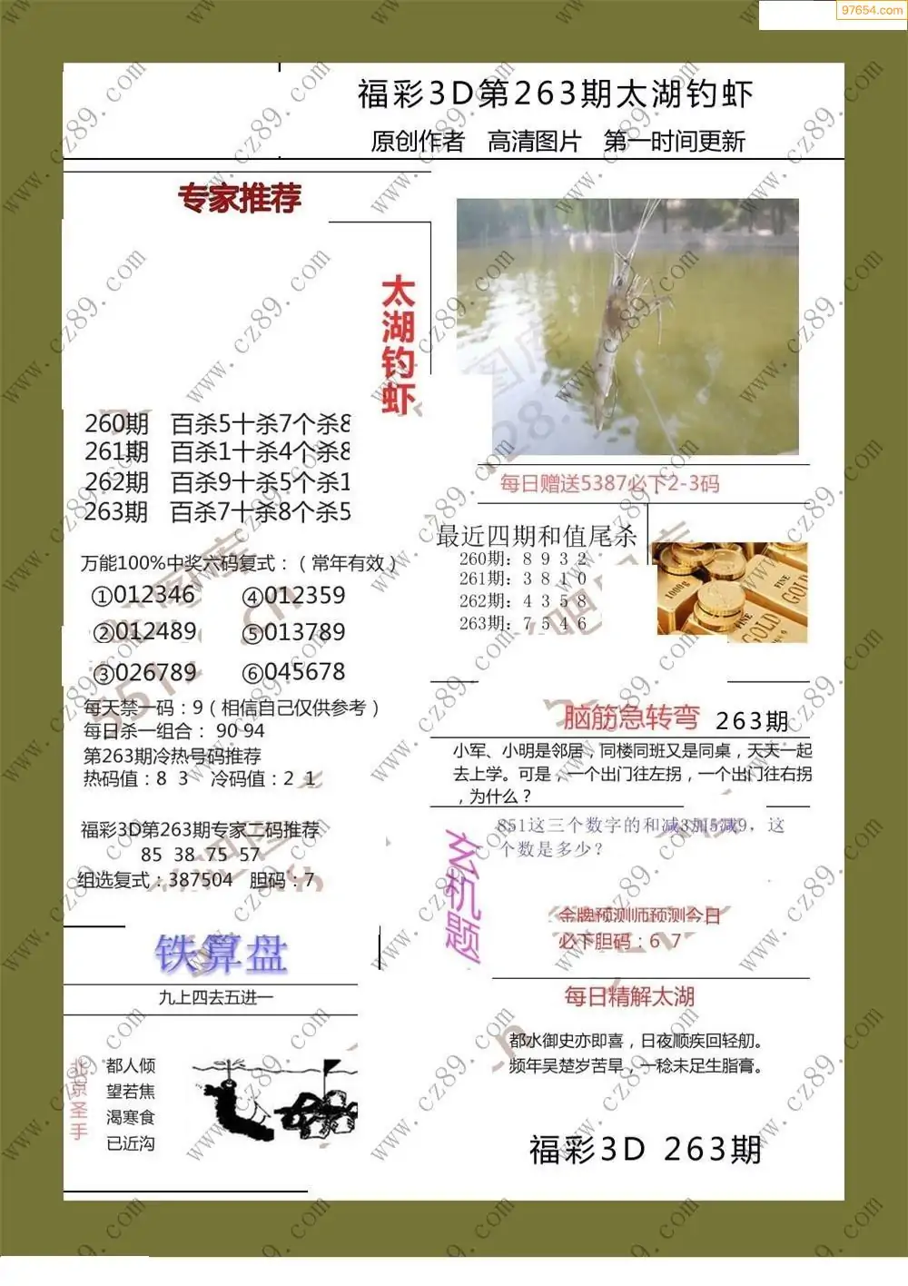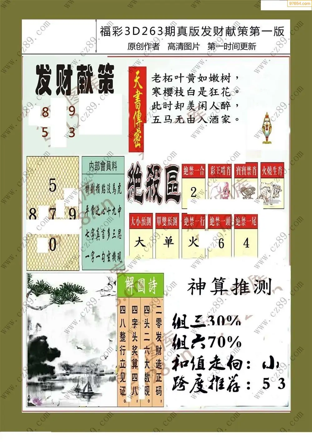 福彩3D264期天牛彩吧套图整合总汇