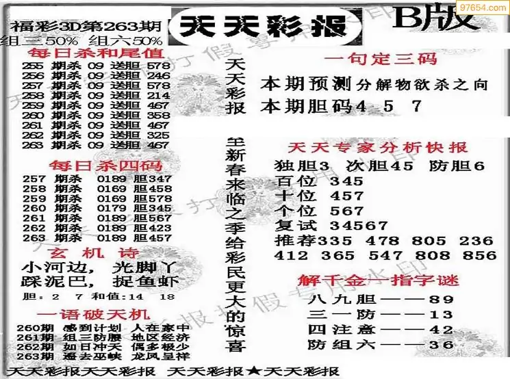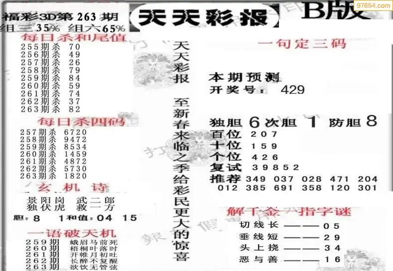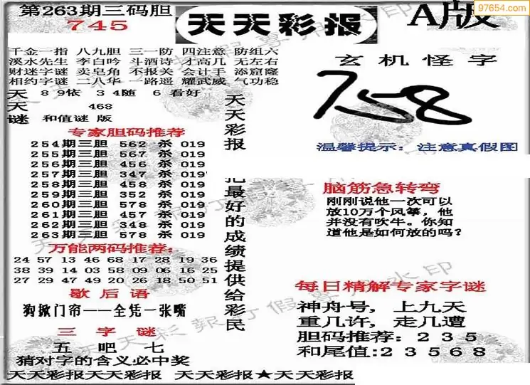 3D杀码 3D胆码 3D字谜 杀尾跨 试机号 藏机图 综合图 打印图 布衣图 胆码图 杀码图 实票欣赏 宝彩网 天中首页 天中APP