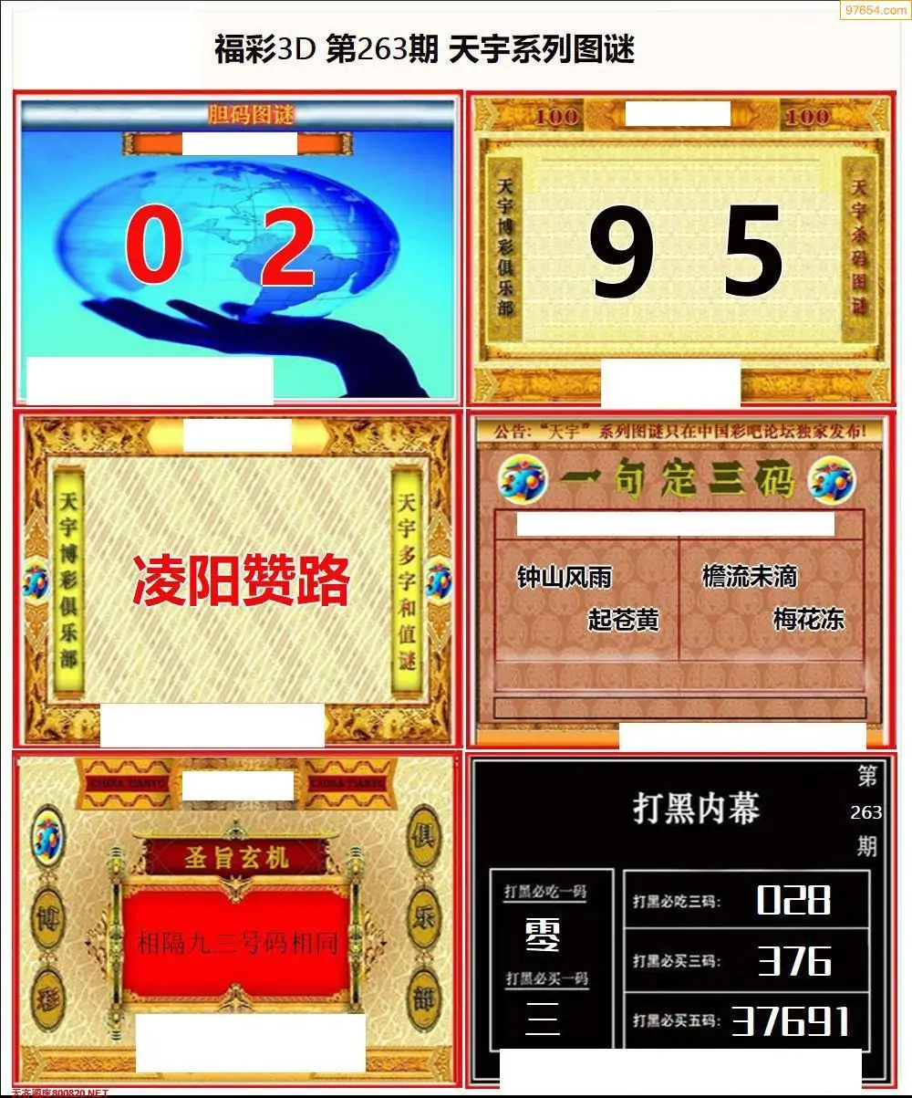 福彩3D264期天牛彩吧套图整合总汇