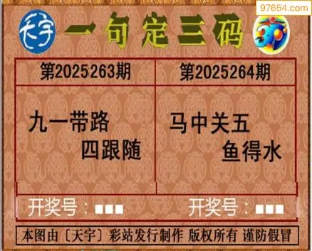 25264期天宇一句定三码3D图库