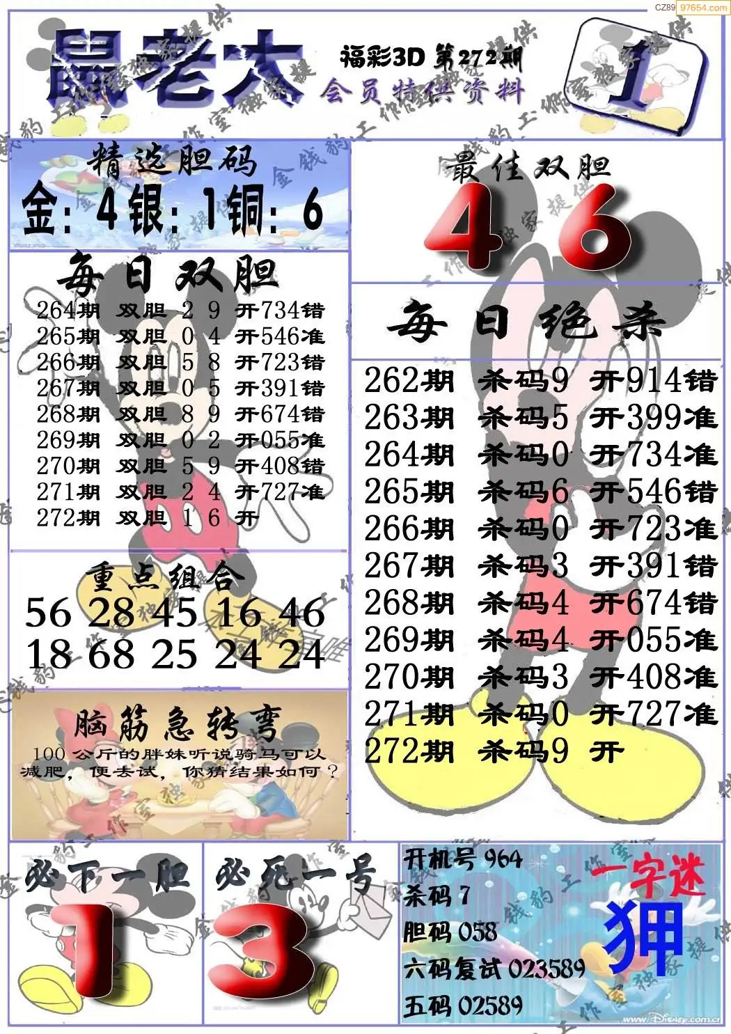2025年272期福彩3d真鼠老大