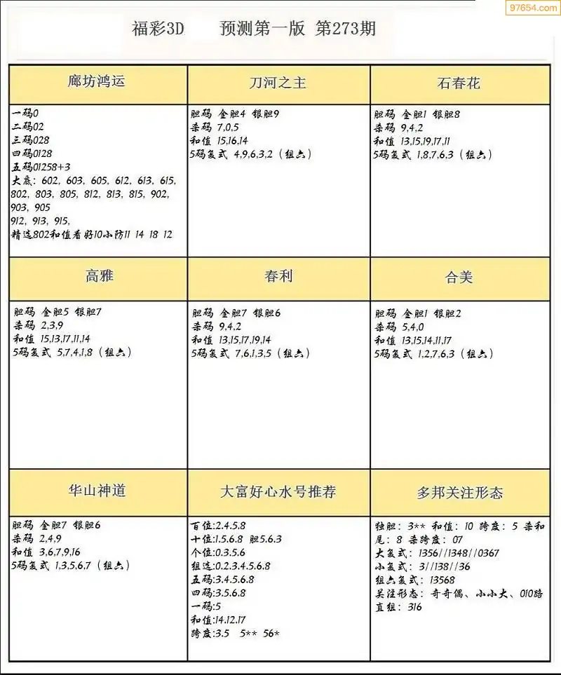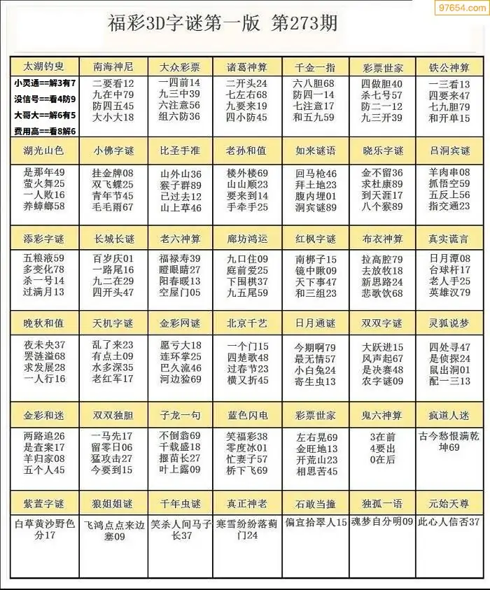 273期3D牛彩预测报+彩吧字谜报