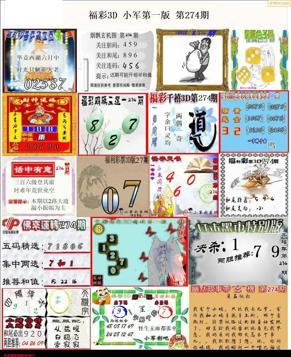 福彩3D274期天牛彩吧套图整合总汇
