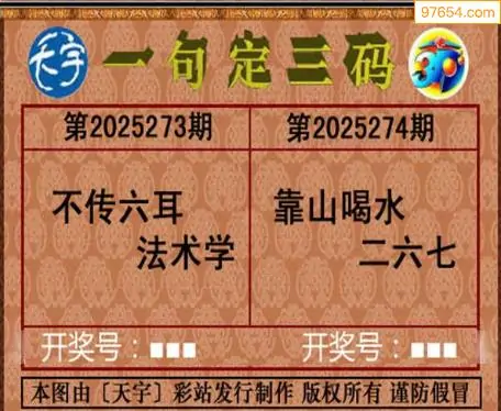 25274期天宇一句定三码3D图库