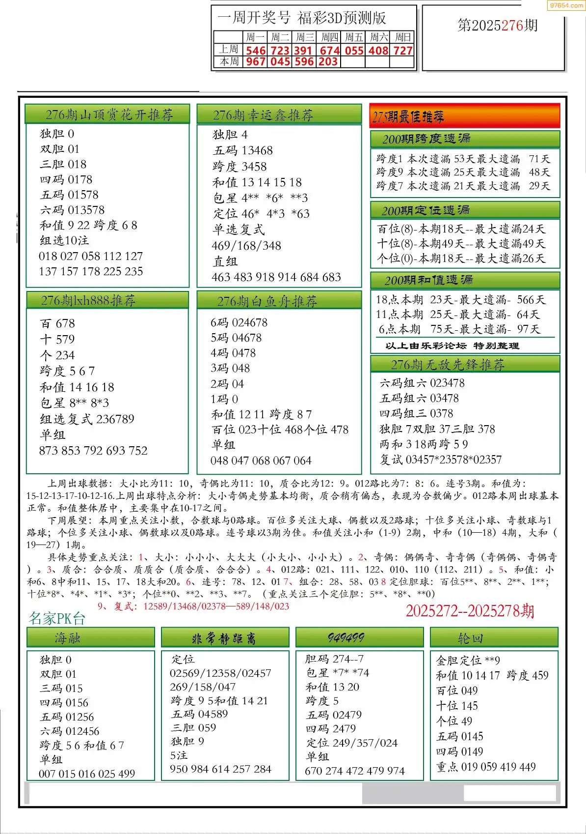 25年311期3D各板块资料整合汇总