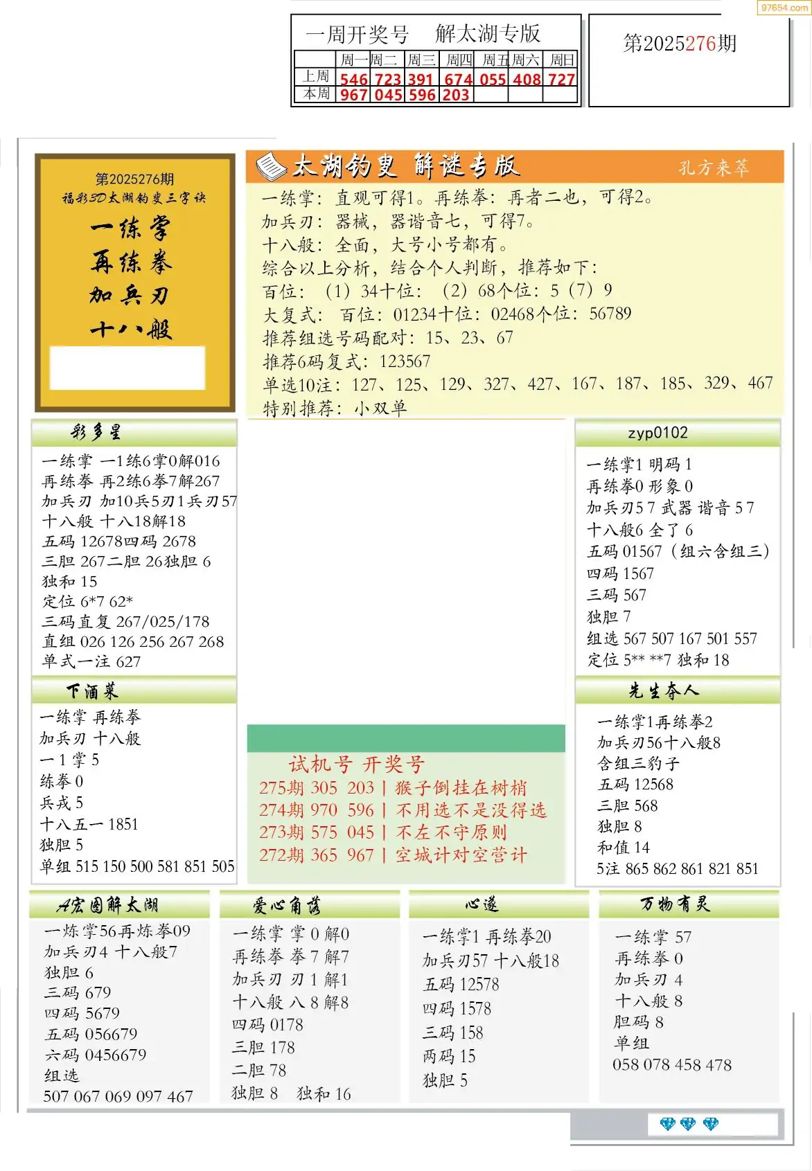 25276期太湖钓叟一句定三码