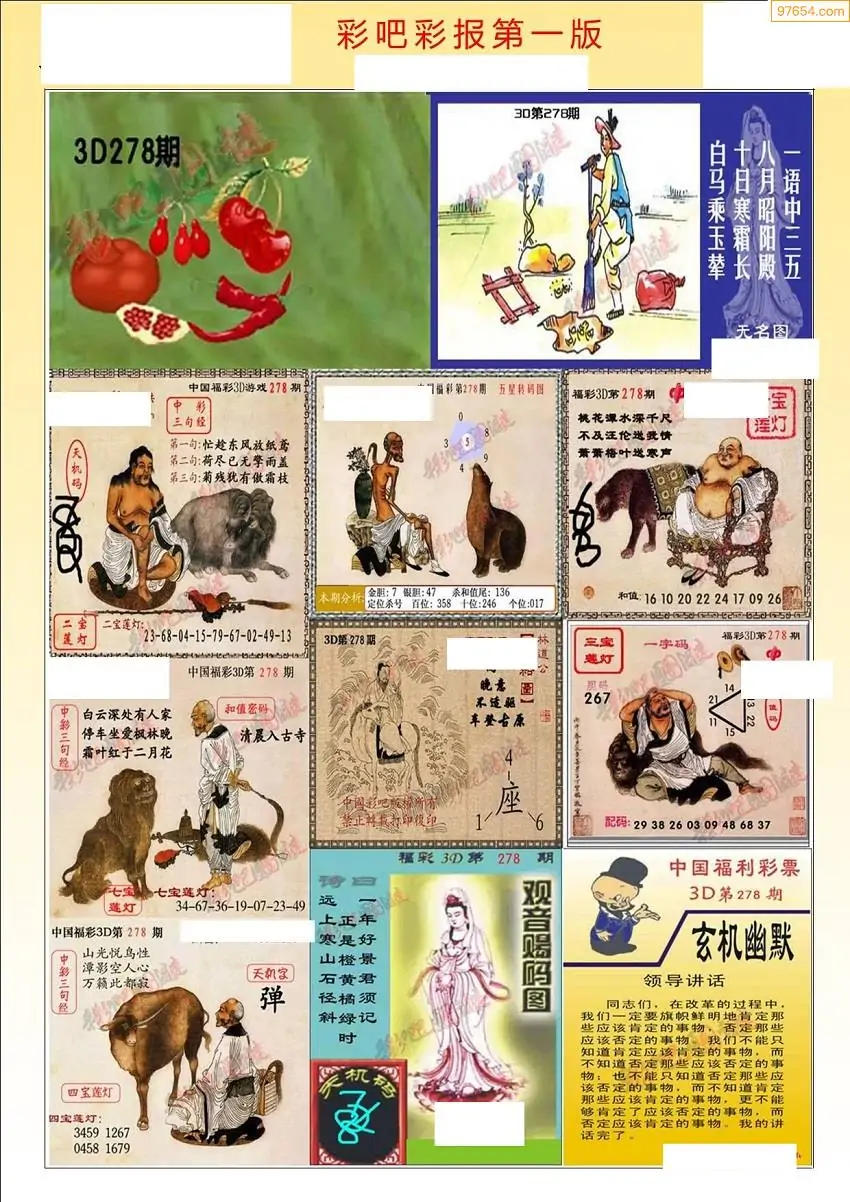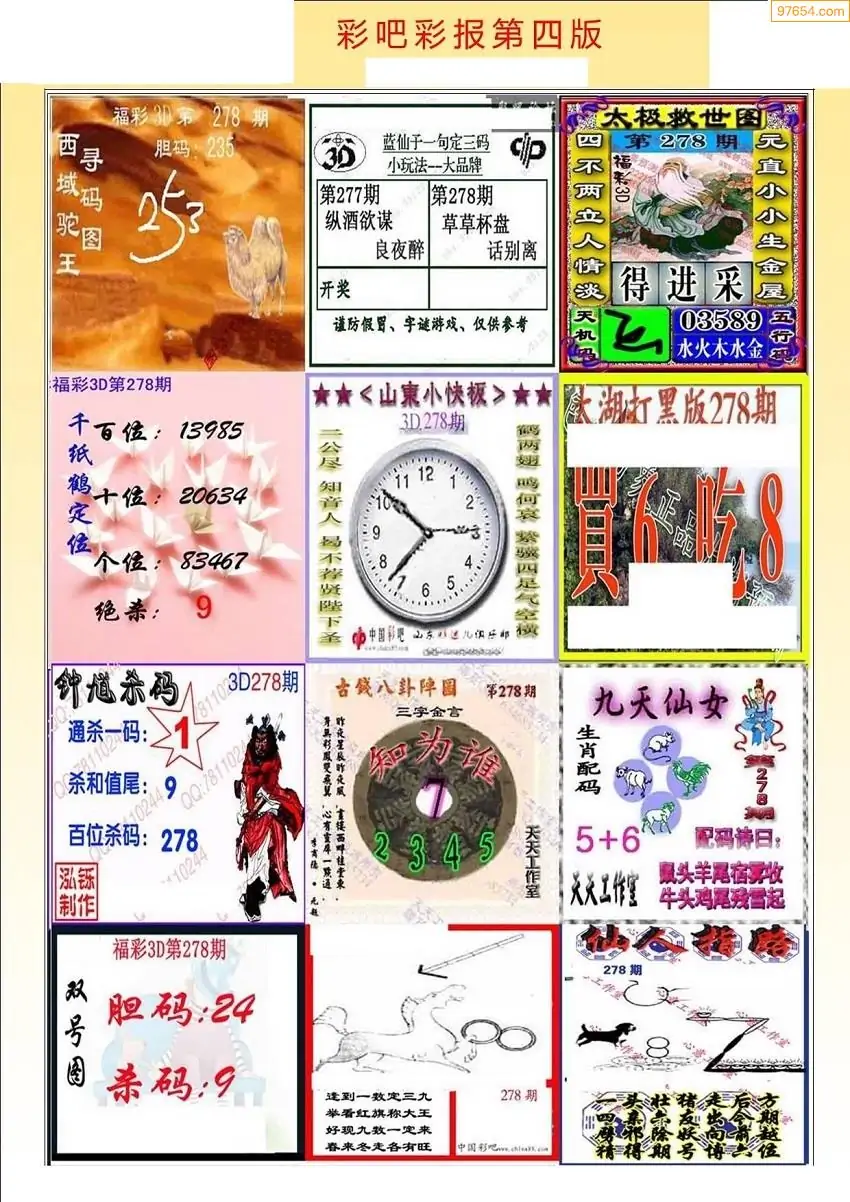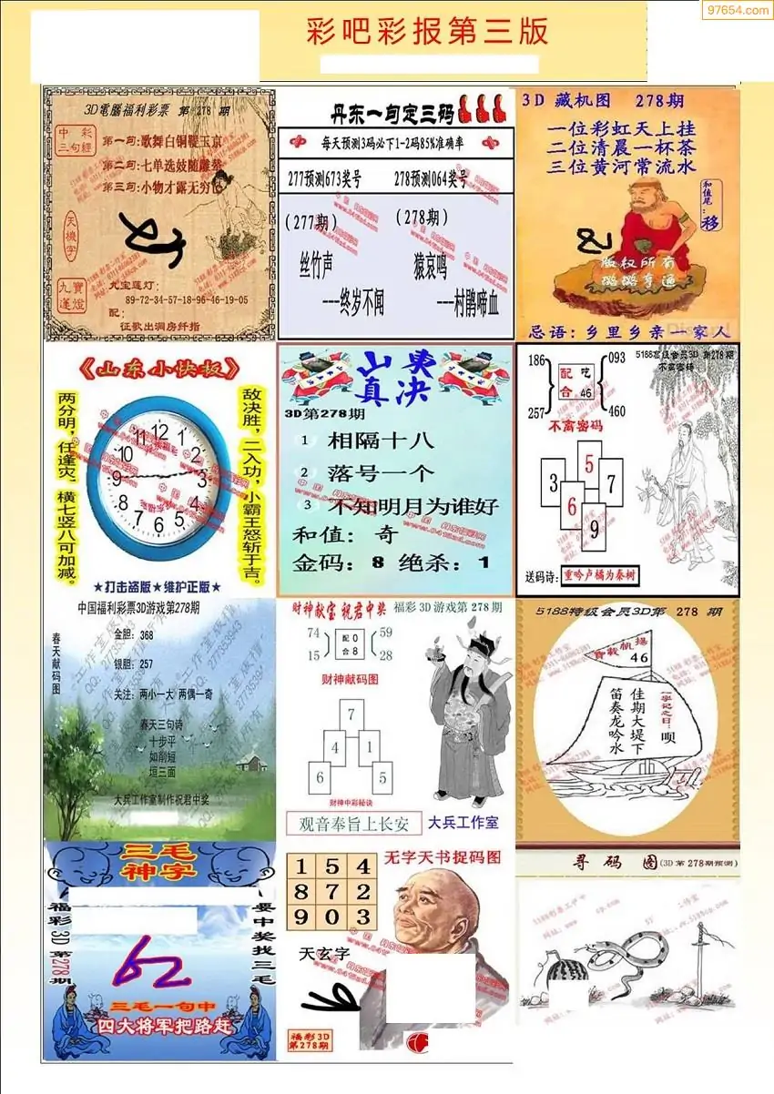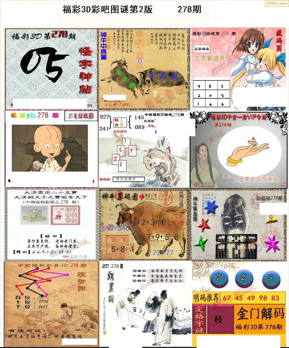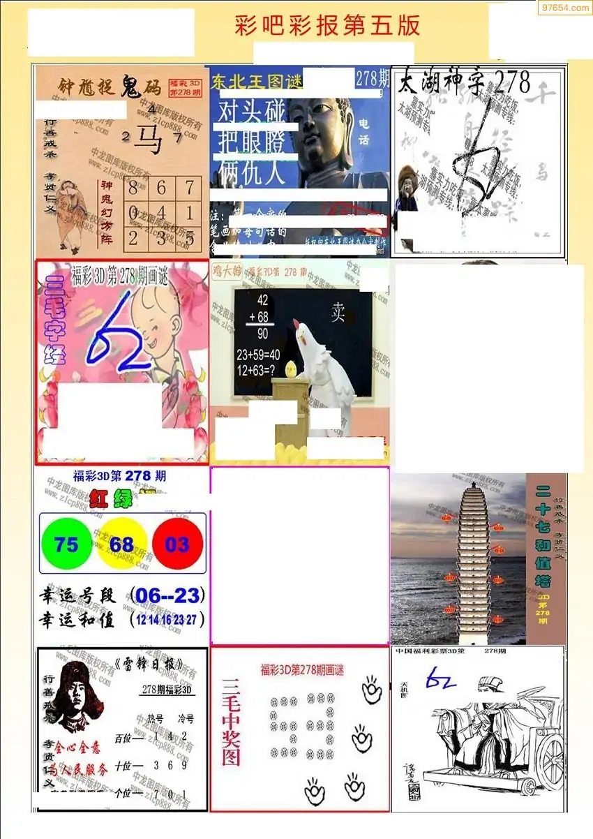 福彩3D278期天牛彩吧套图整合总汇