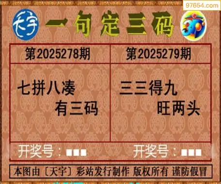 25279期天宇一句定三码3D图库