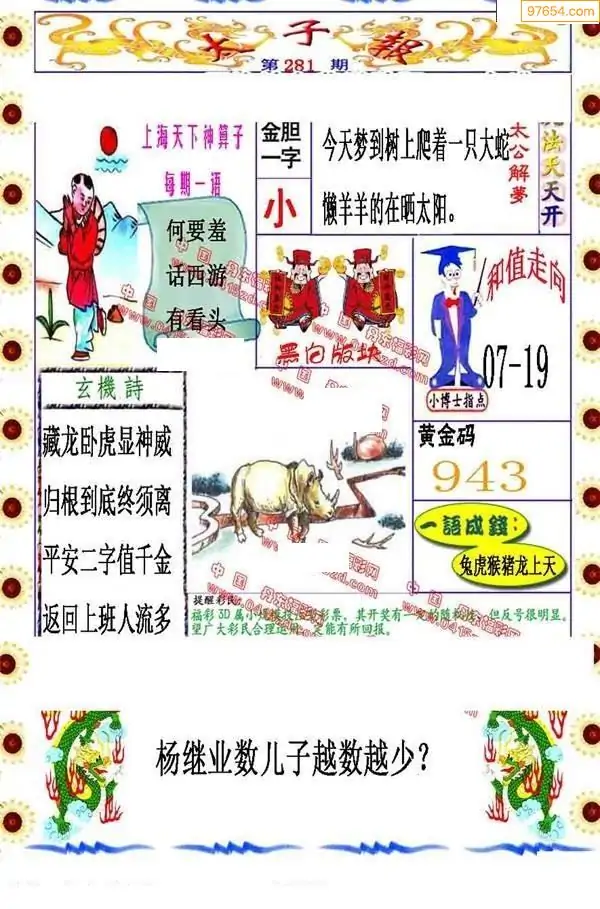 281期福彩太子报红五图库