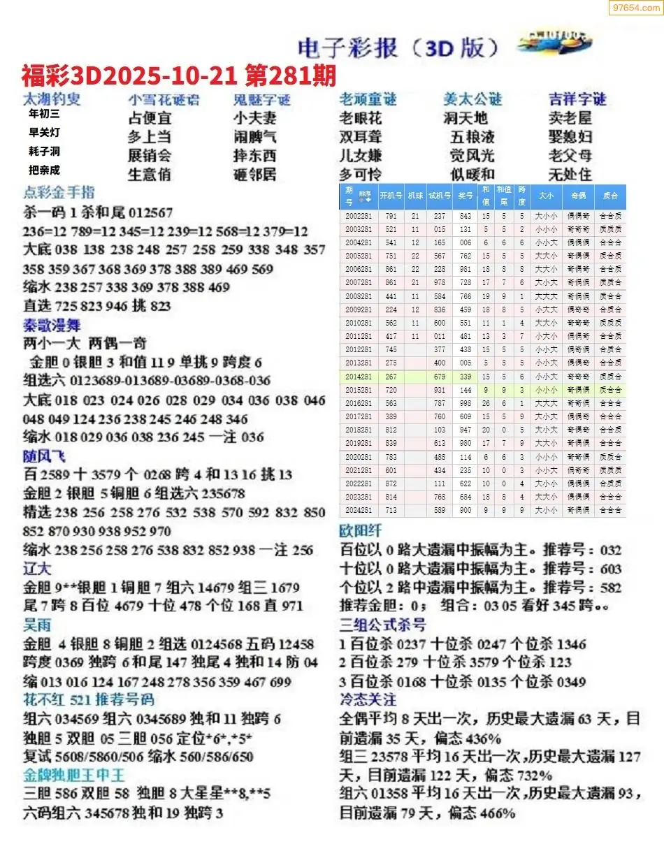 2025年281期电子彩报专家分析