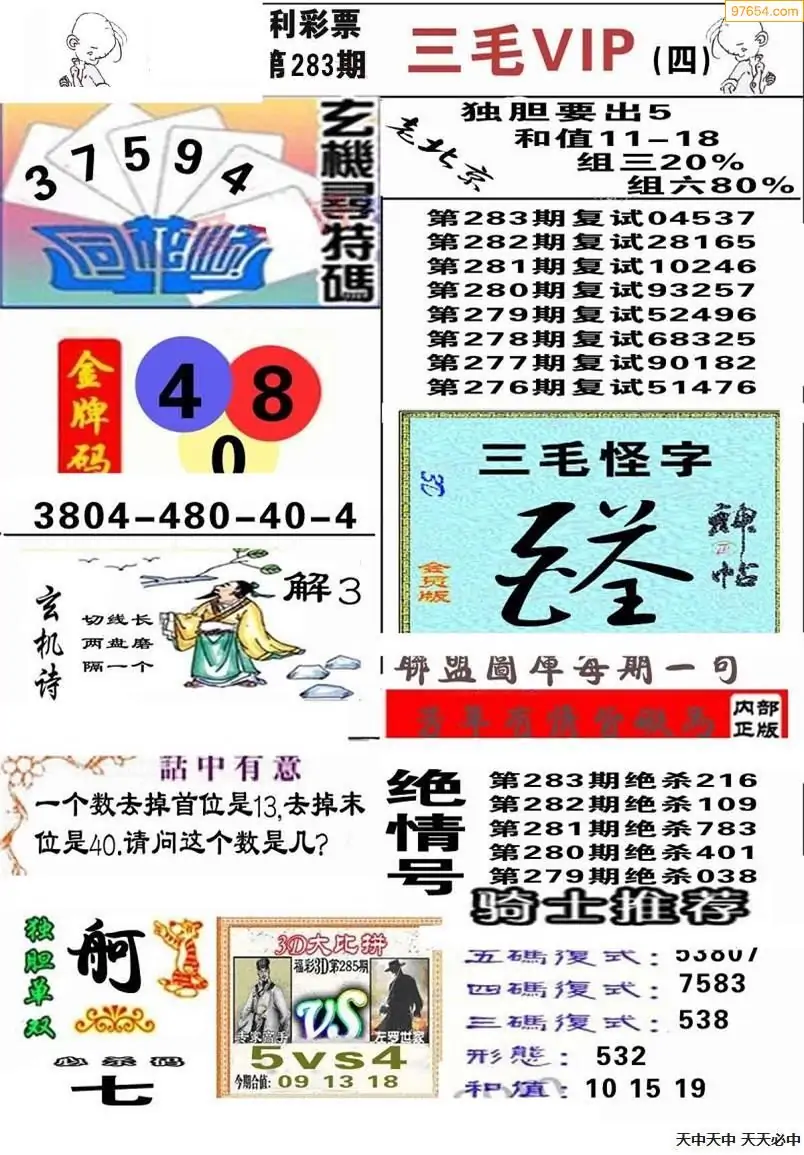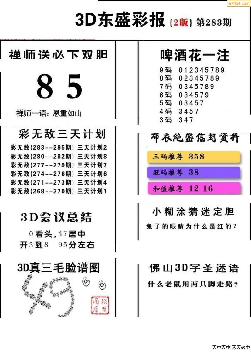 福彩3D311期天牛彩吧套图整合总汇