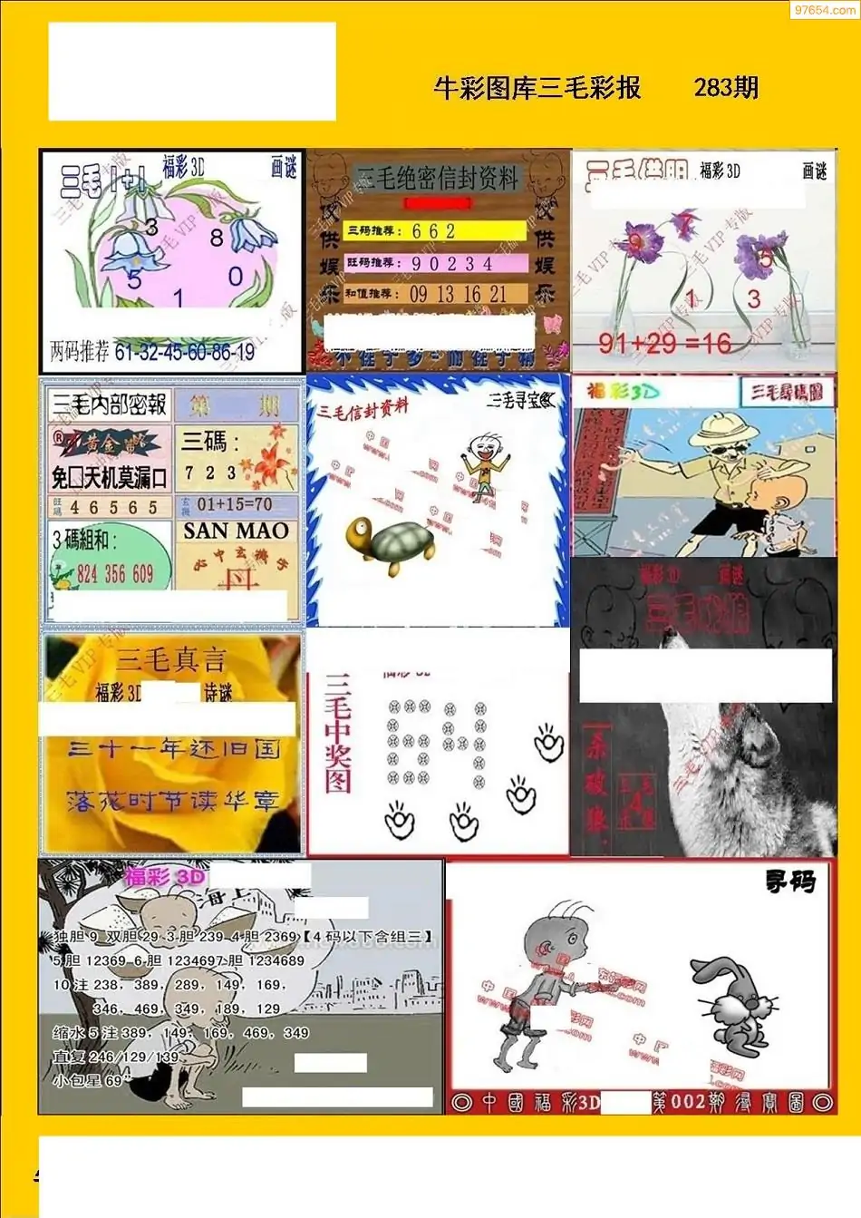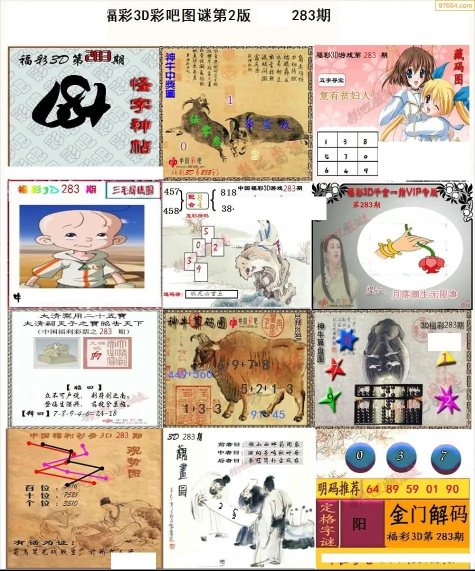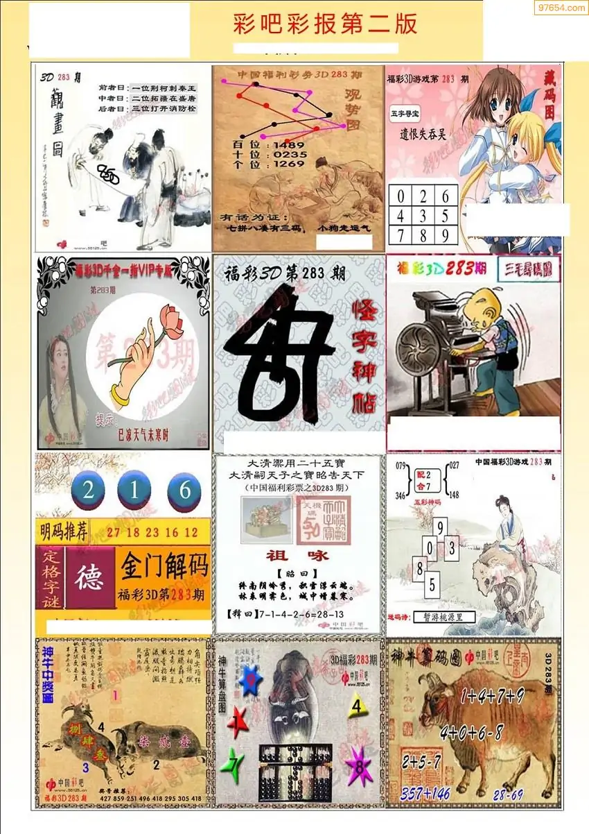 福彩3D283期天牛彩吧套图整合总汇
