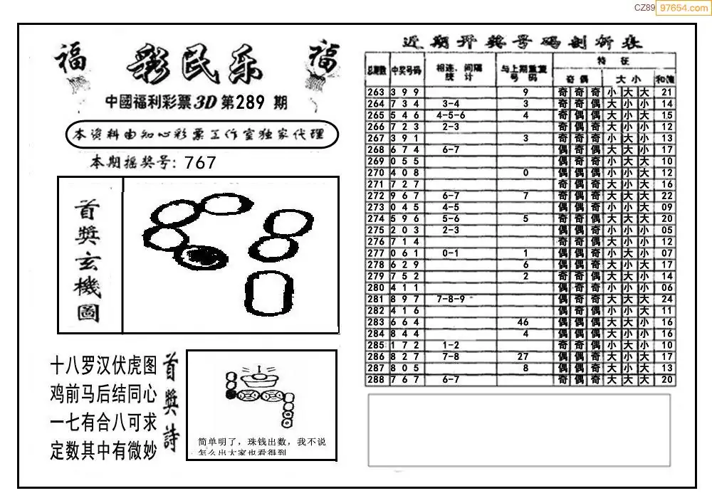 2025年福彩彩民乐289期
