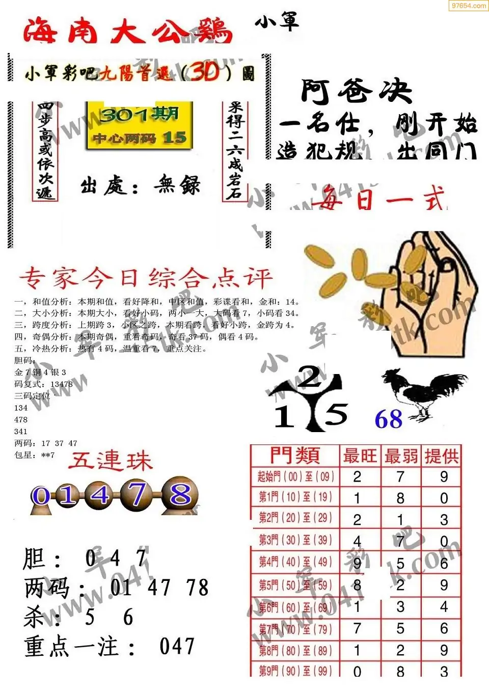 25301期海南大公鸡福彩图谜