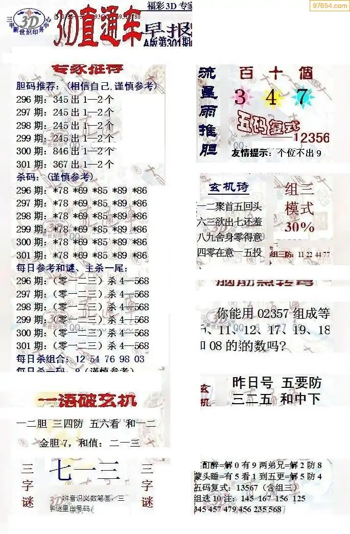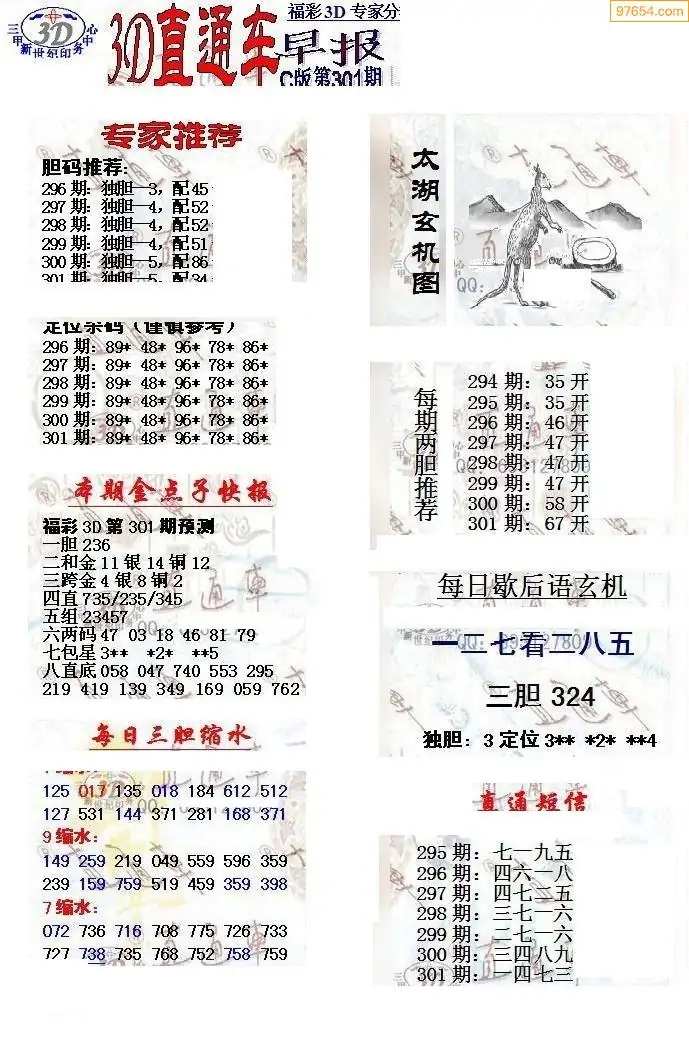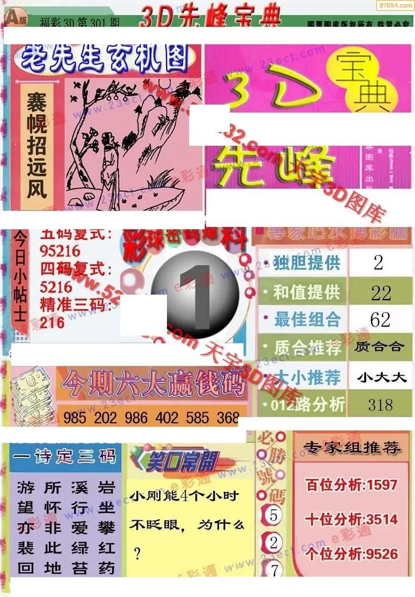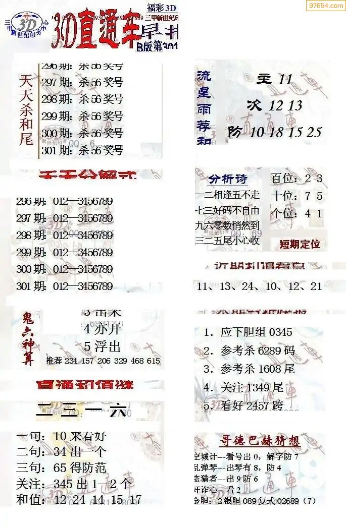 25年301期3d选号彩报图谜画谜