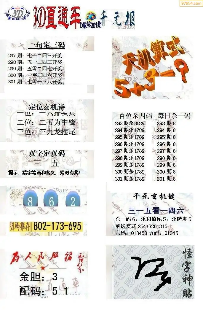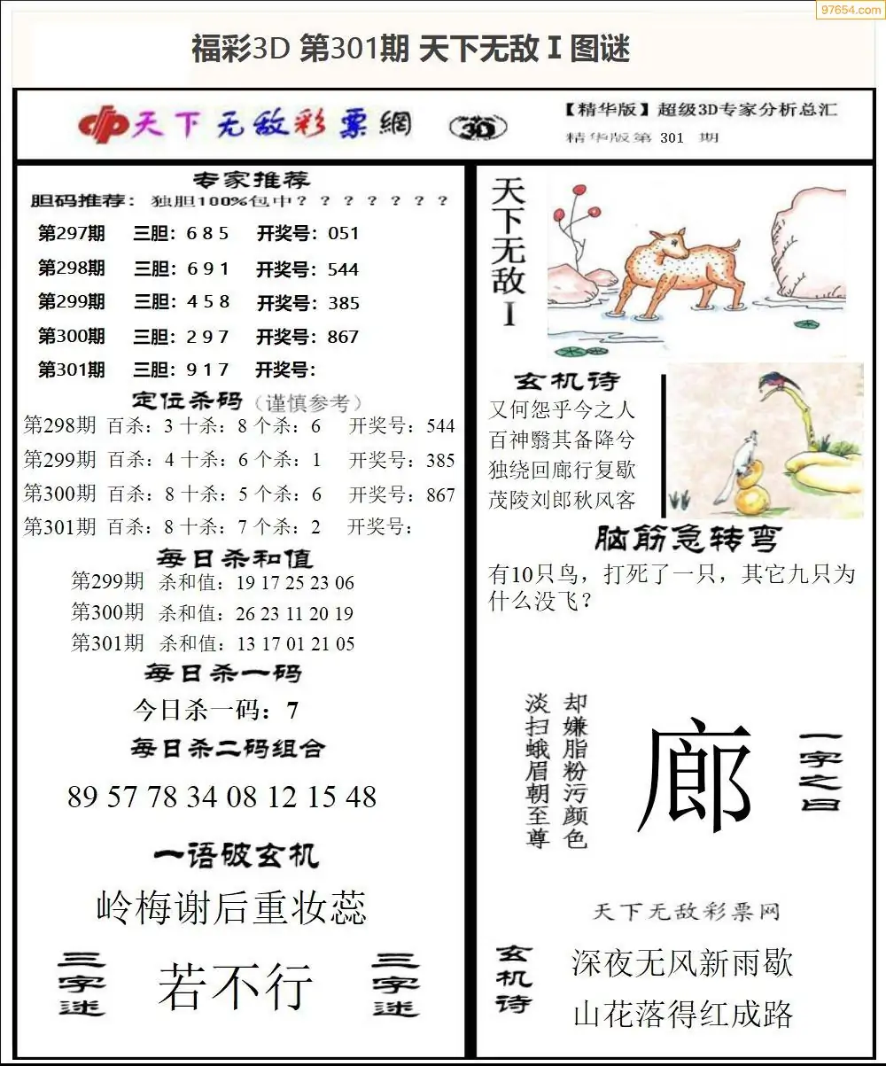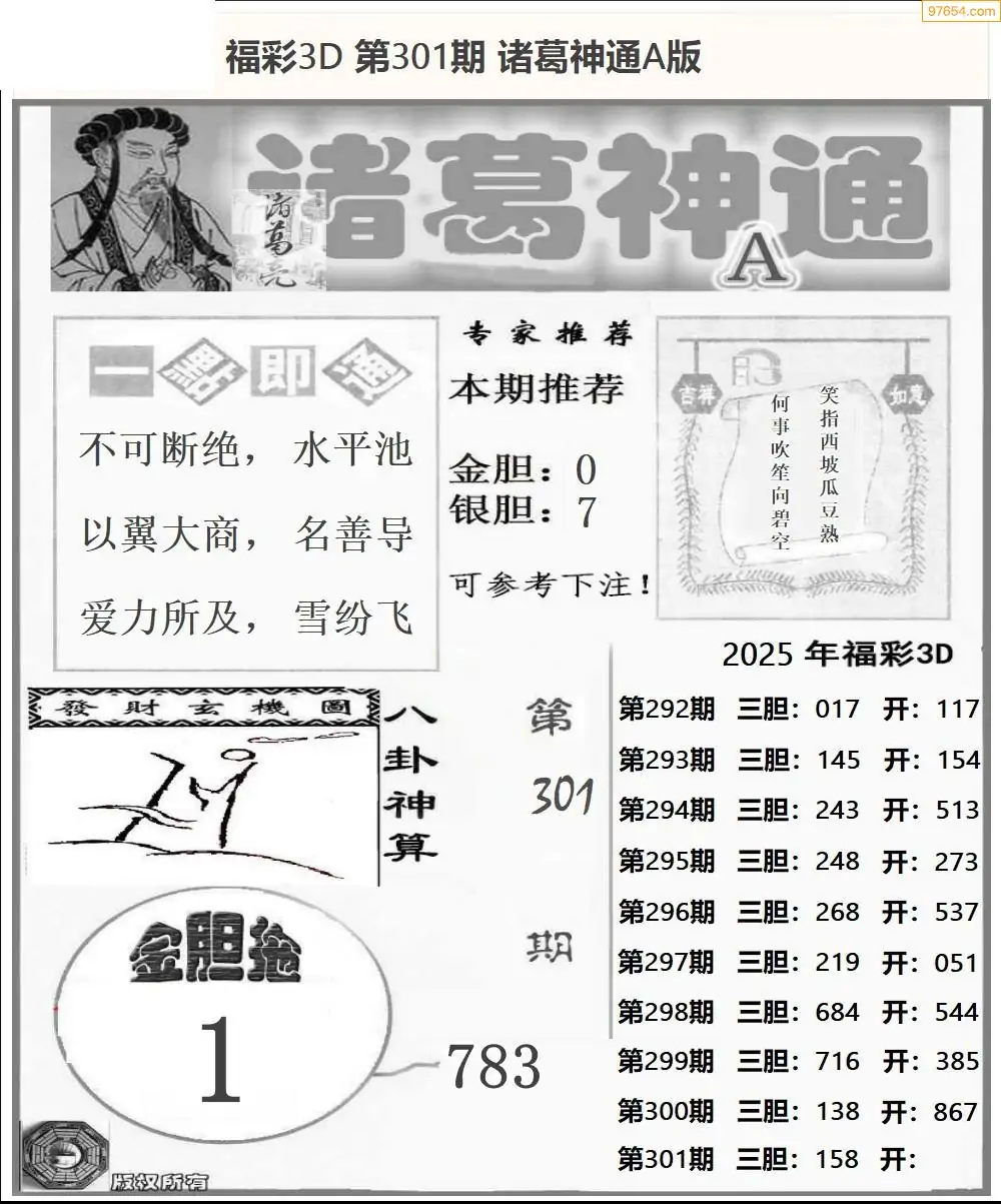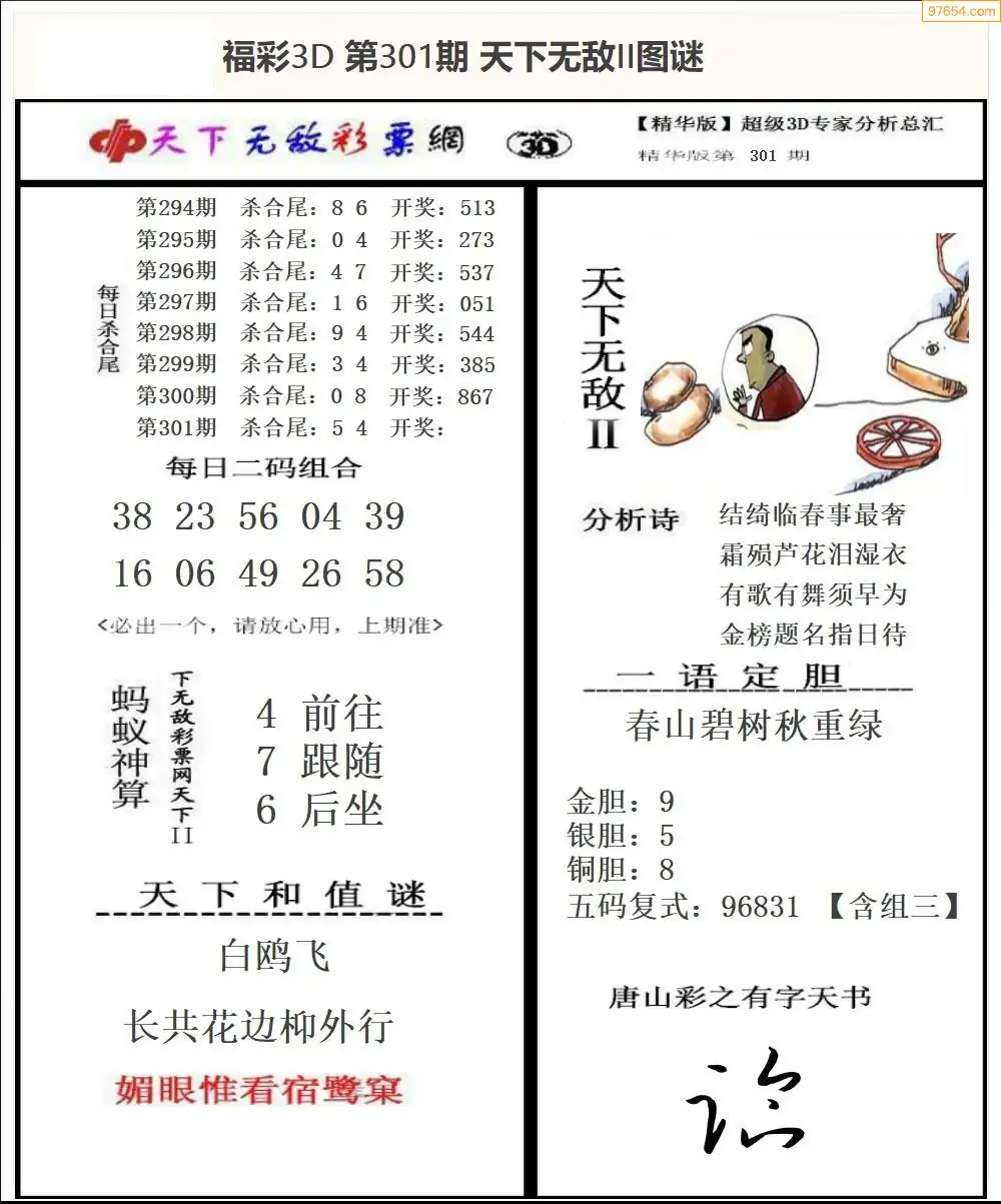 25年301期3d选号彩报图谜画谜