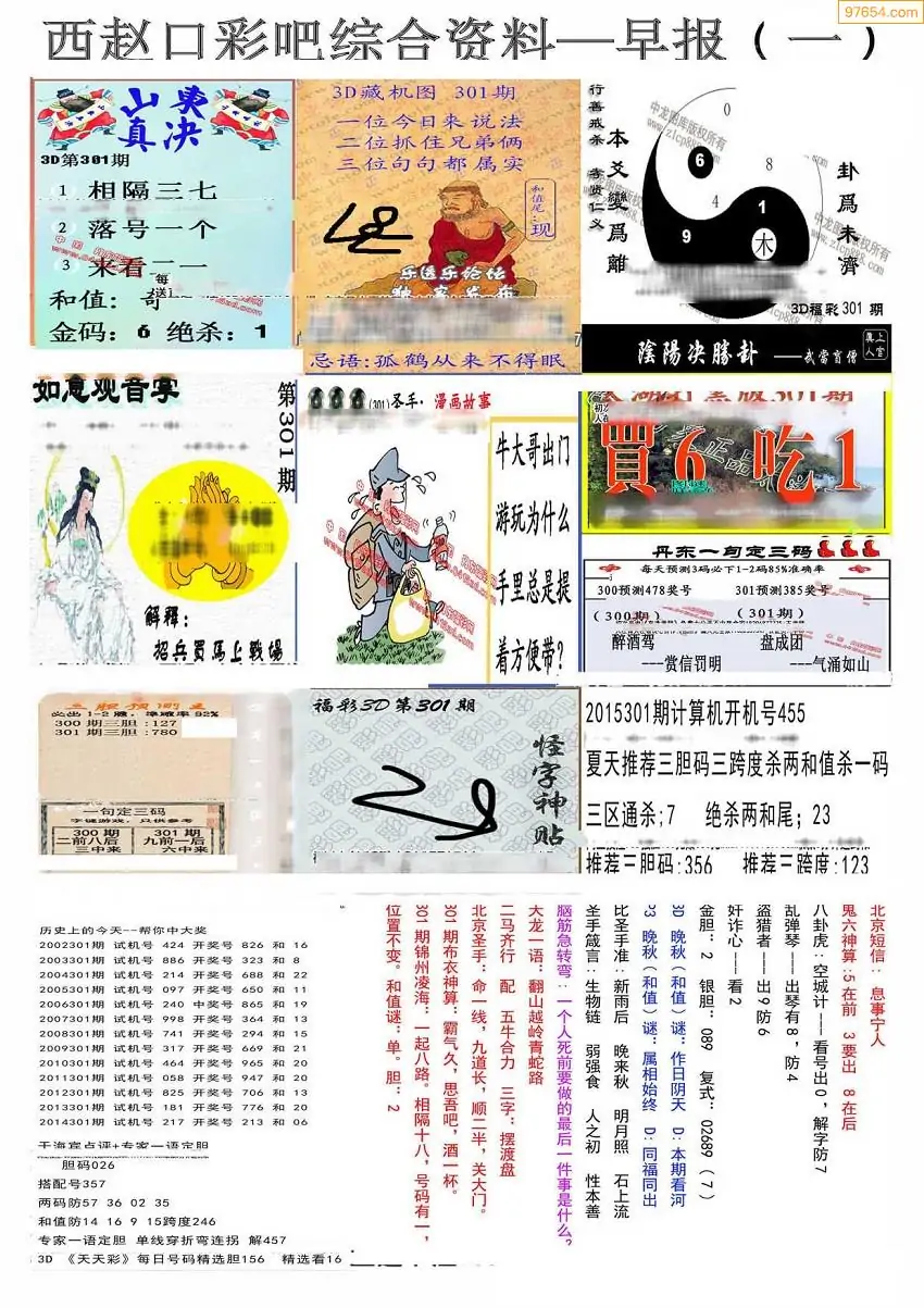 福彩3D308期天牛彩吧套图整合总汇