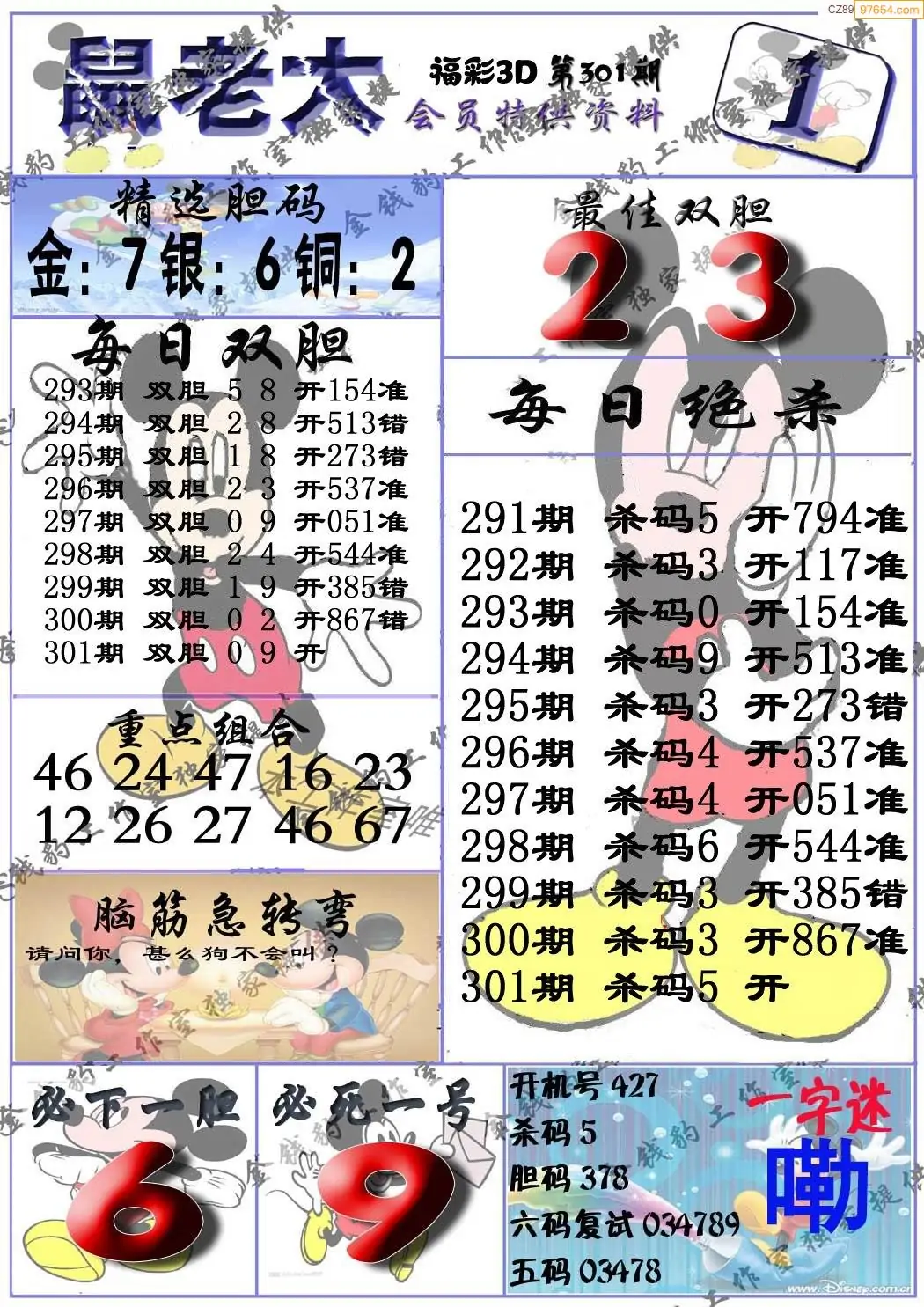 2025年301期福彩3d真鼠老大