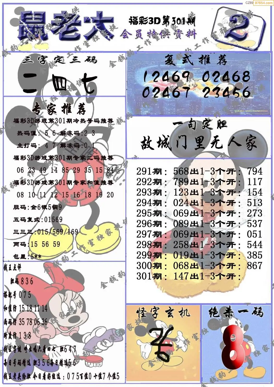 福彩3D308期天牛彩吧套图整合总汇