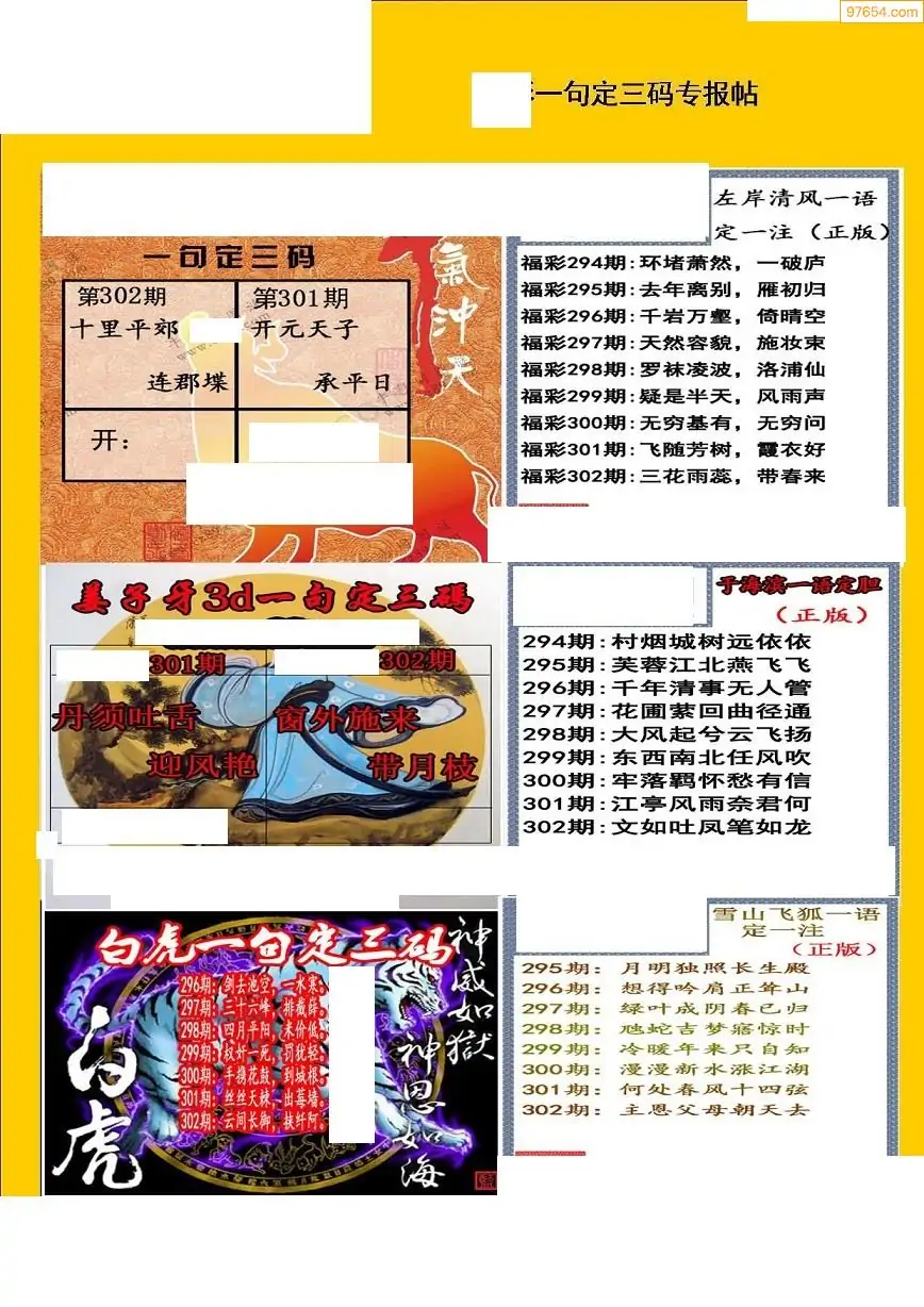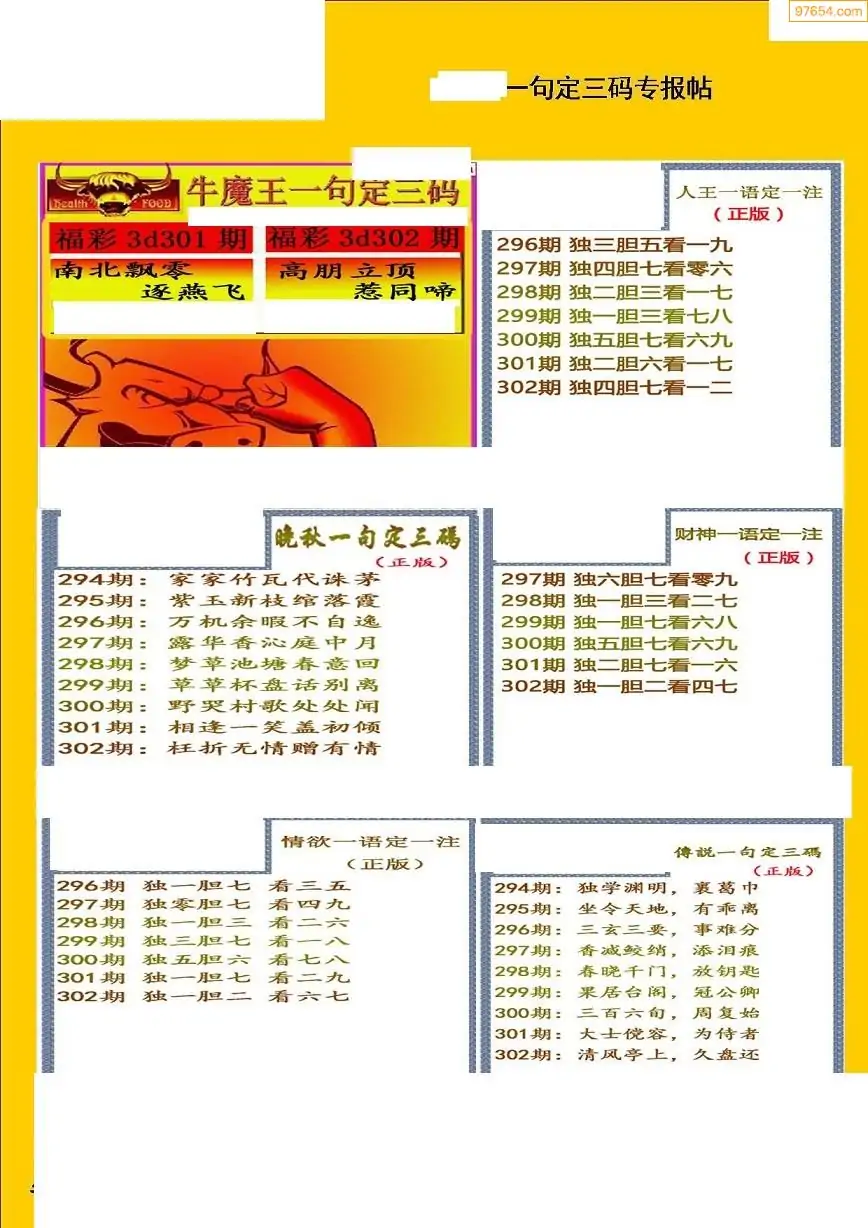 福彩3D308期天牛彩吧套图整合总汇