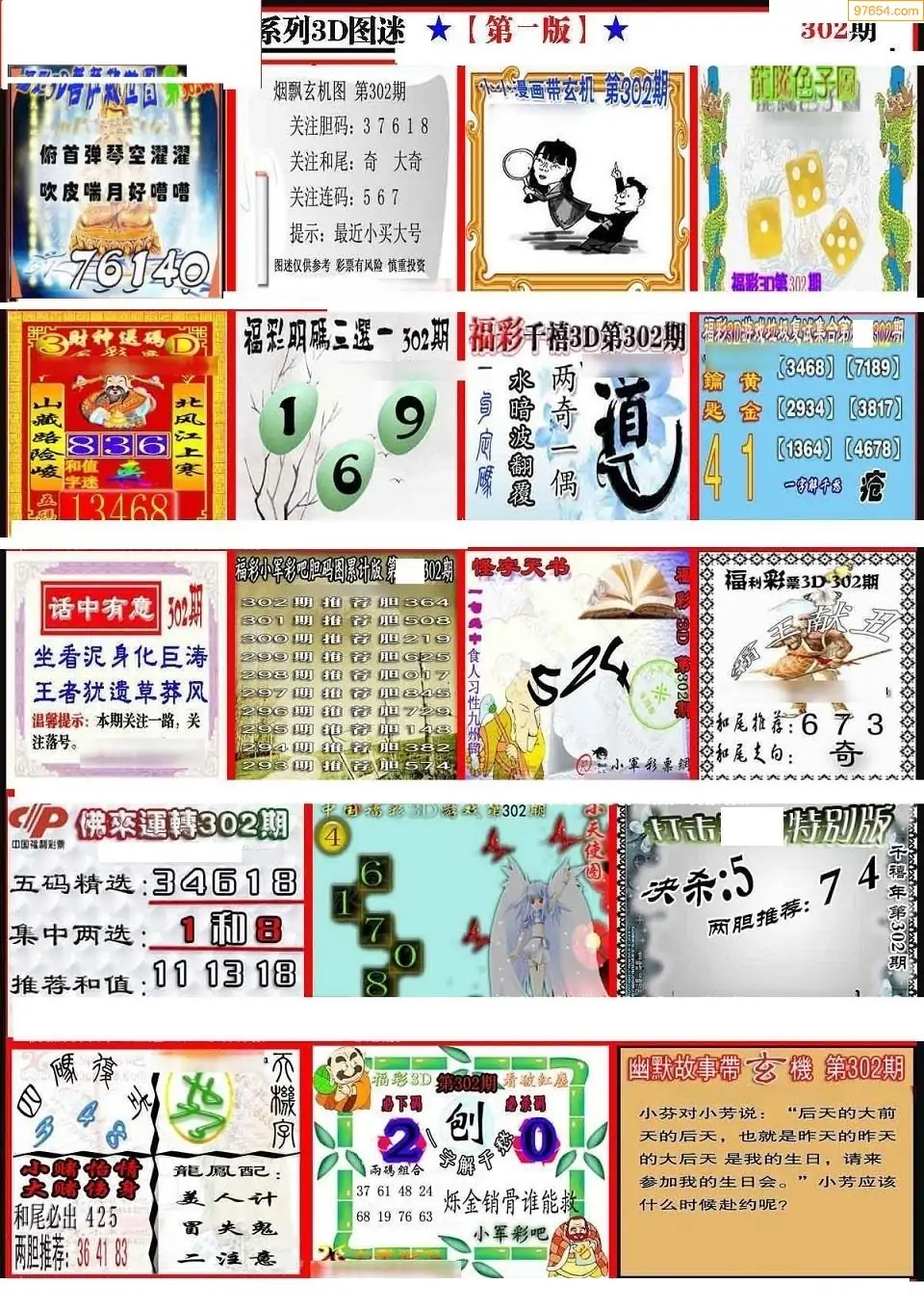 福彩3D308期天牛彩吧套图整合总汇