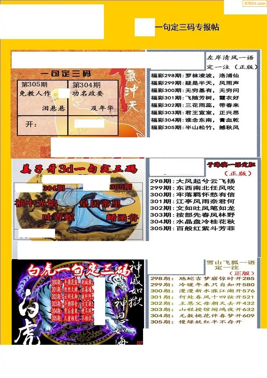 福彩3D308期天牛彩吧套图整合总汇