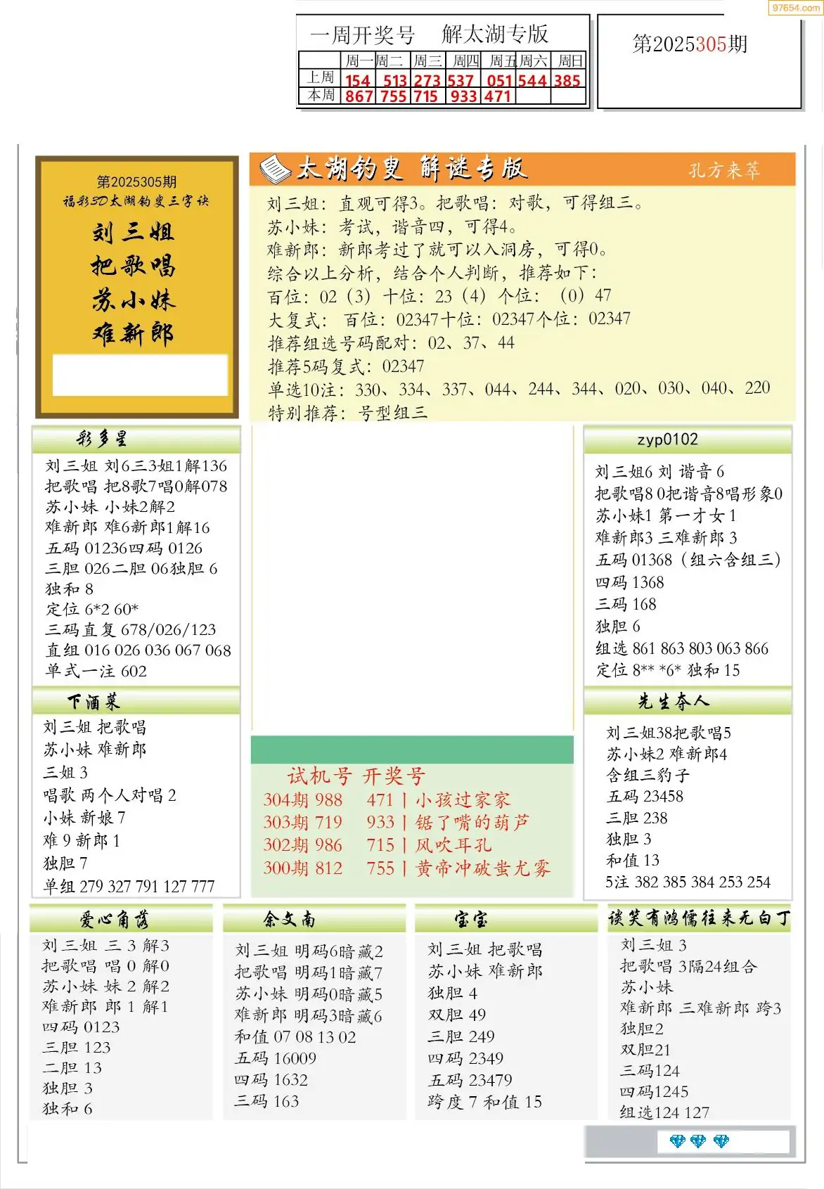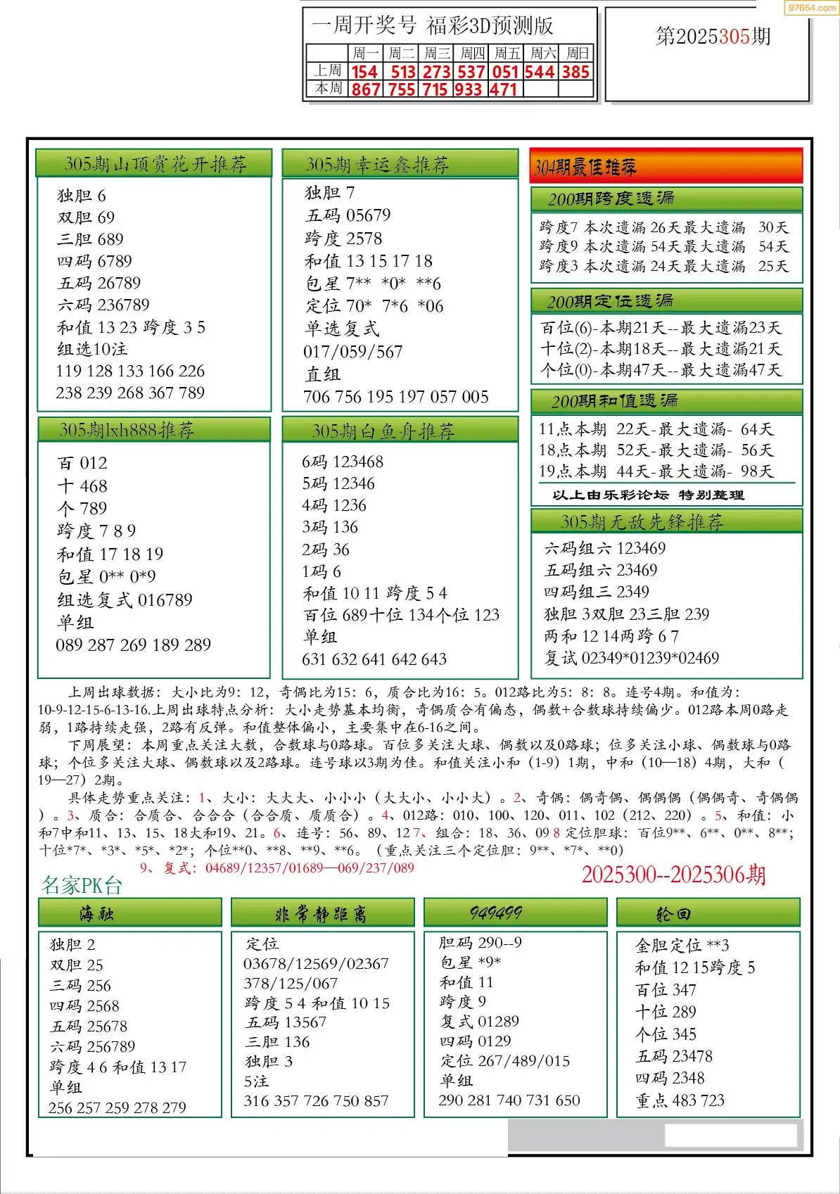 25年308期3D各板块资料整合汇总
