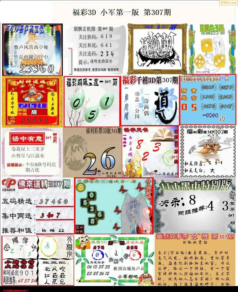 福彩3D307期天牛彩吧套图整合总汇
