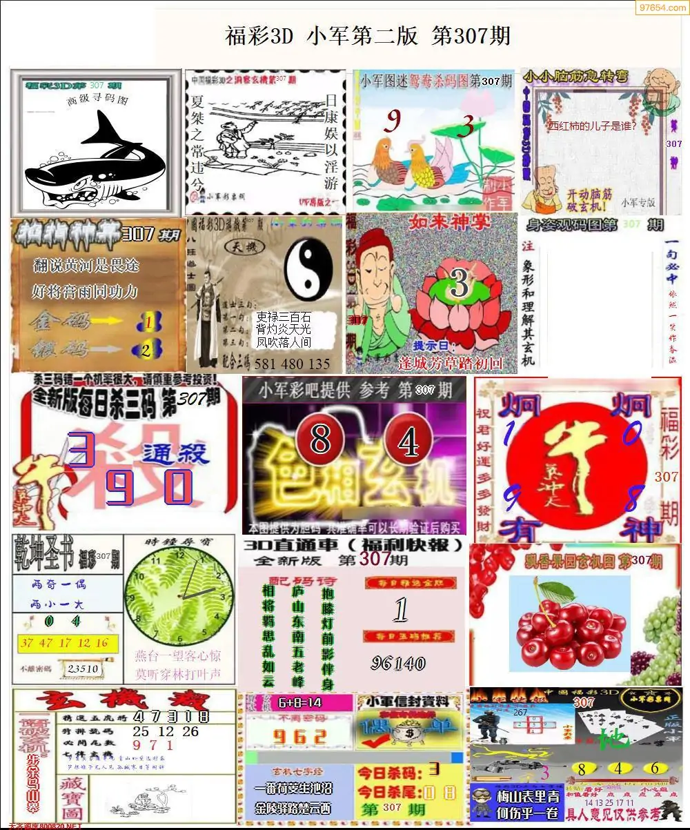 307期3D牛彩预测报+彩吧字谜报