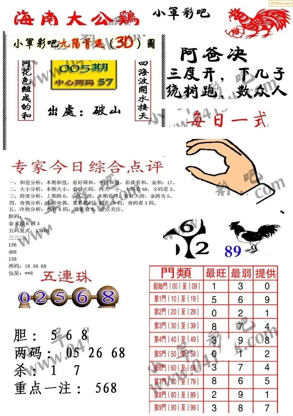 26005期海南大公鸡福彩图谜