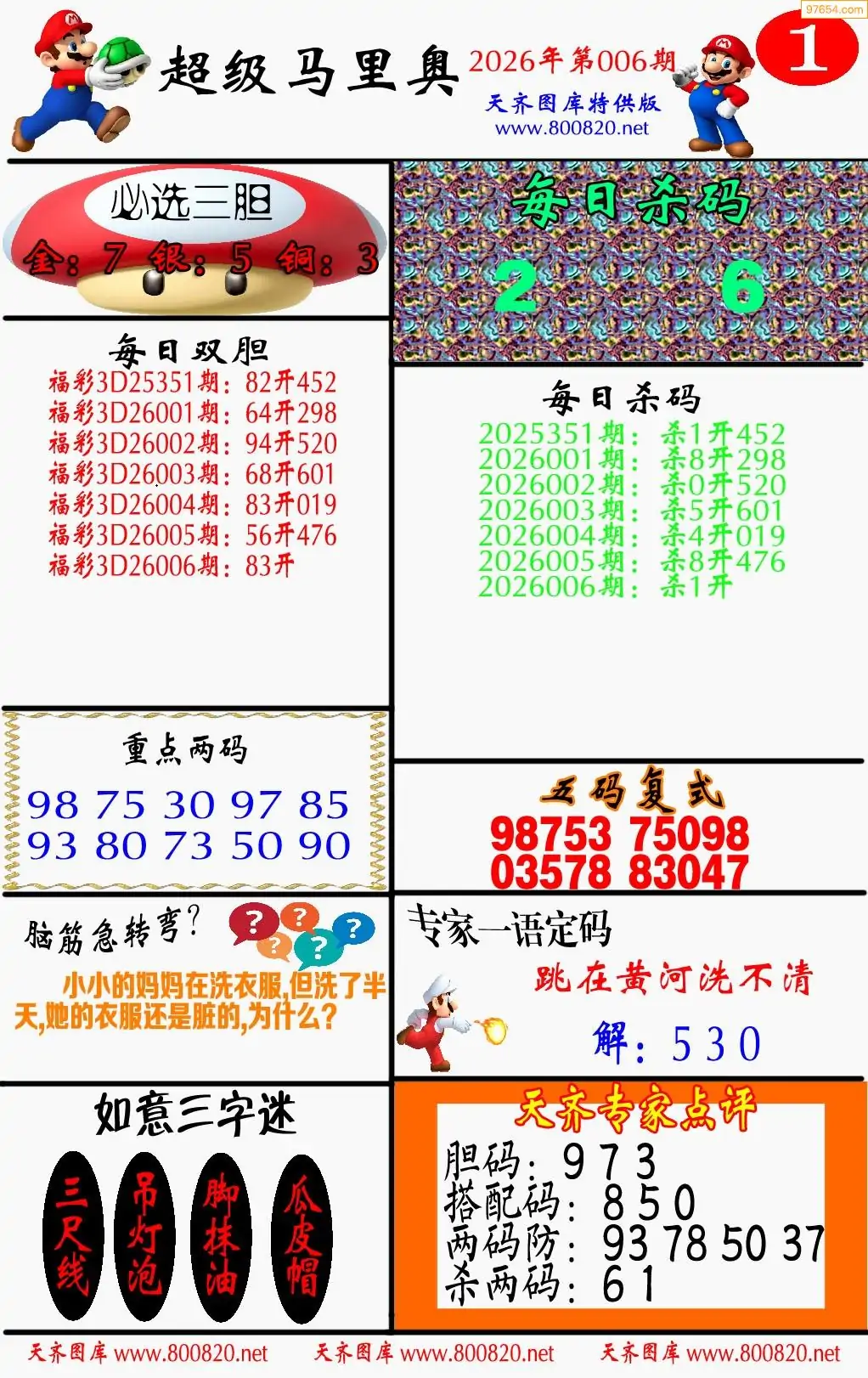 3d福彩006期马里奥两版彩报