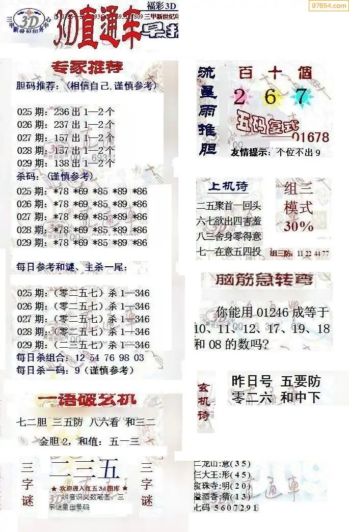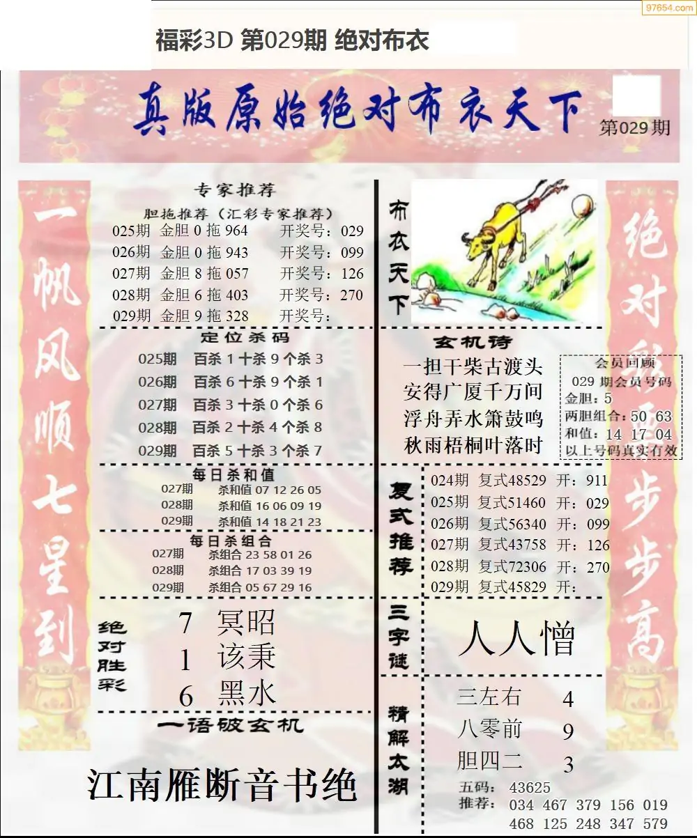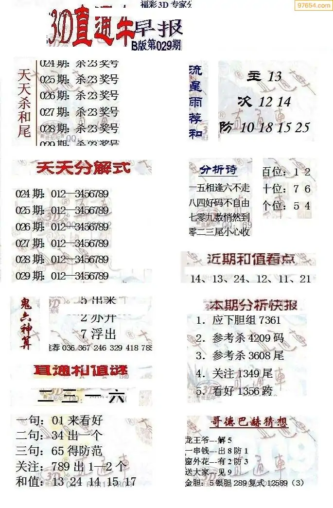 26年029期3d选号彩报图谜画谜