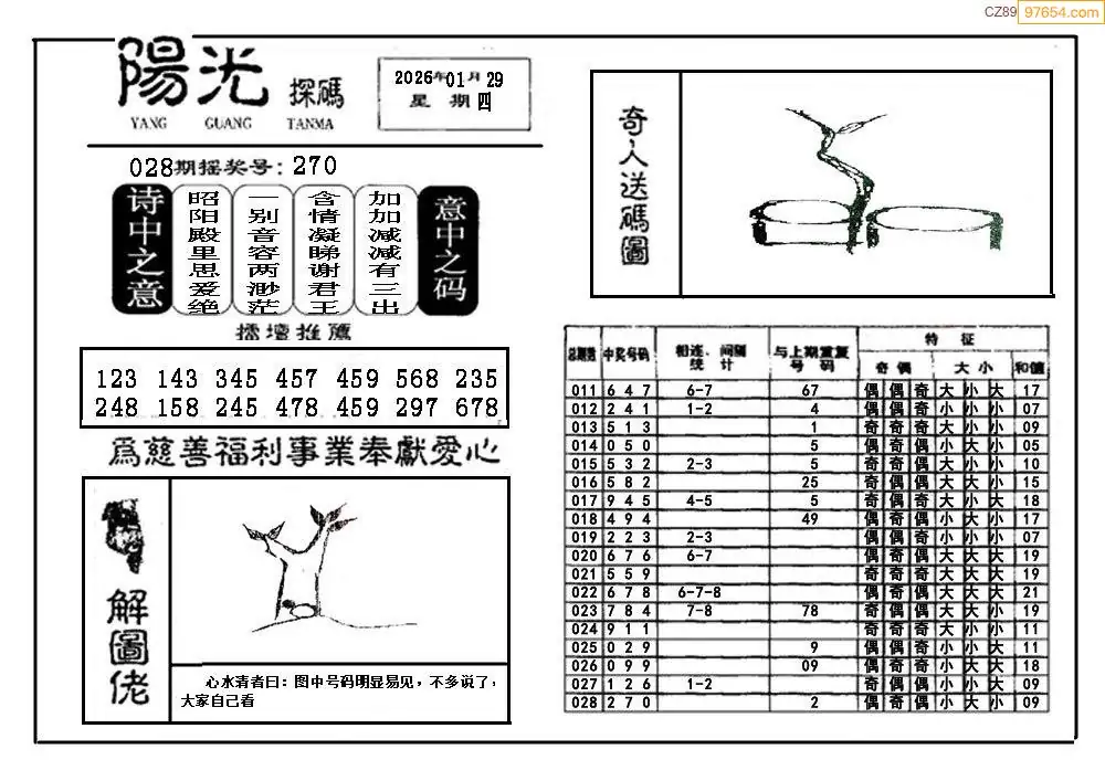 26029期福彩3D阳光探码图
