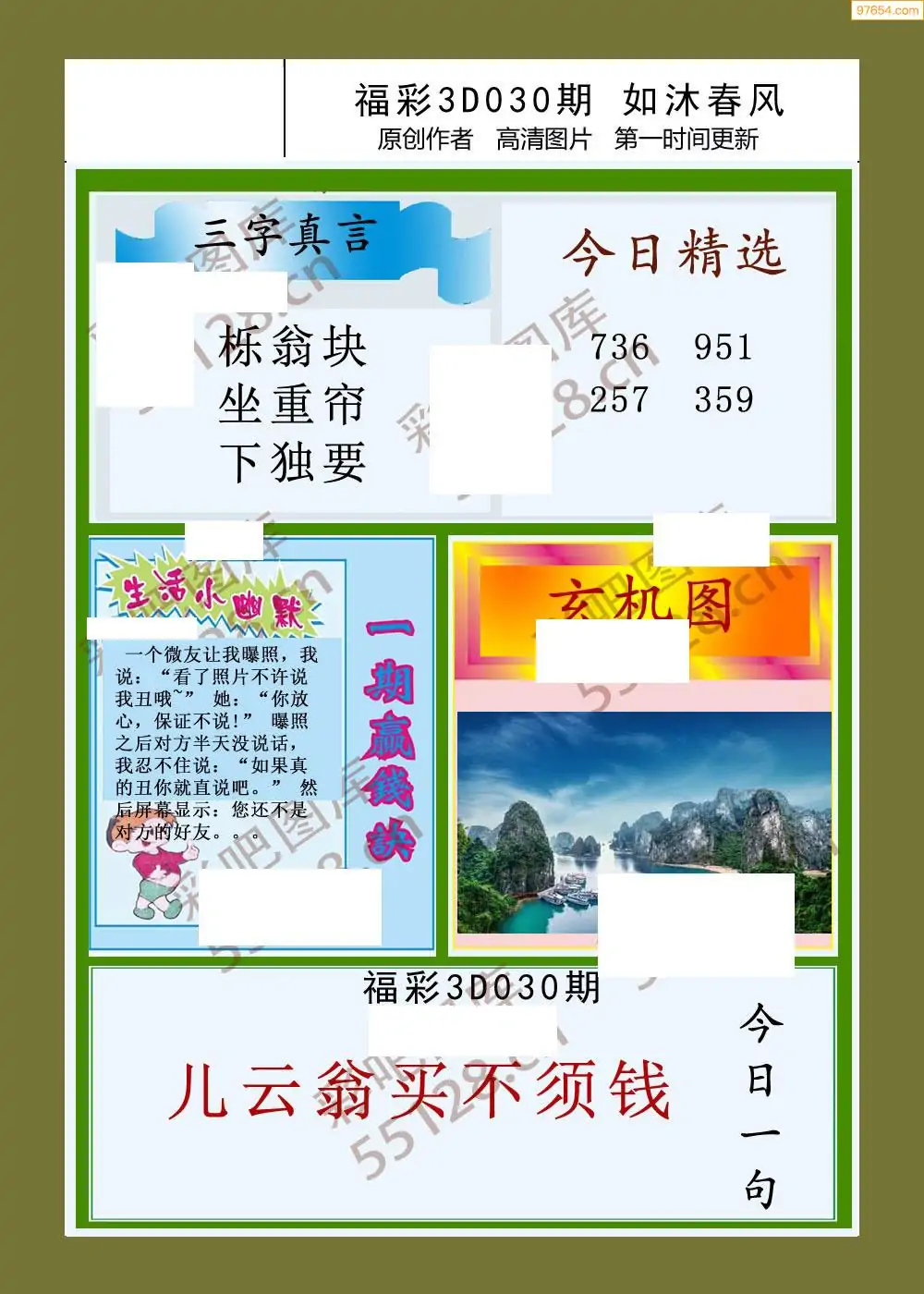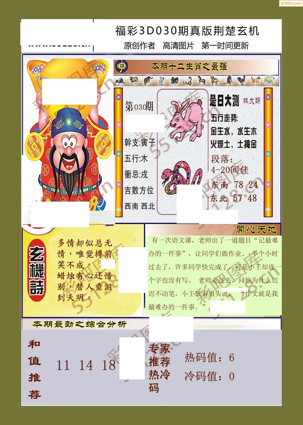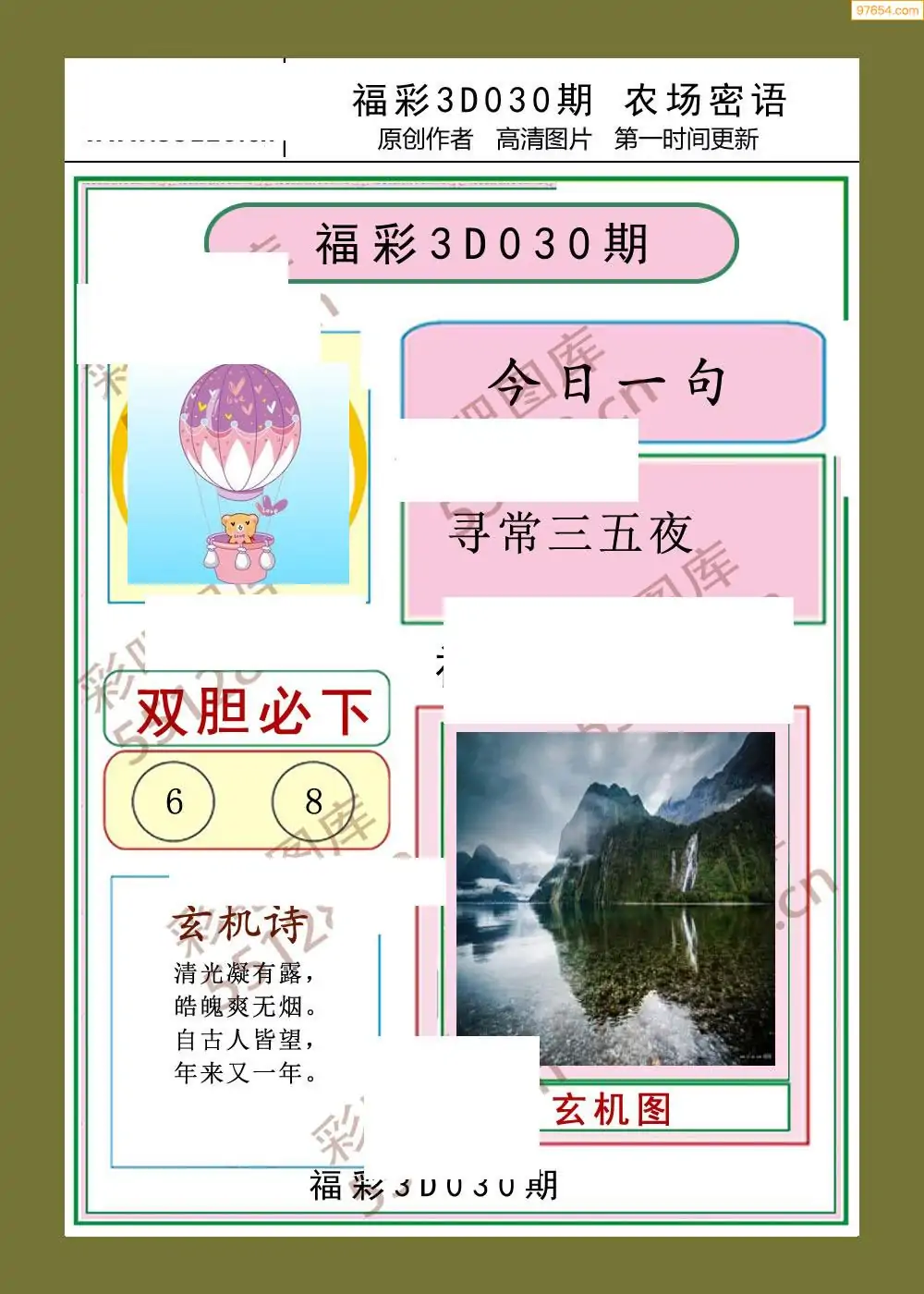 030期鑫马分析+杀手报3d图谜