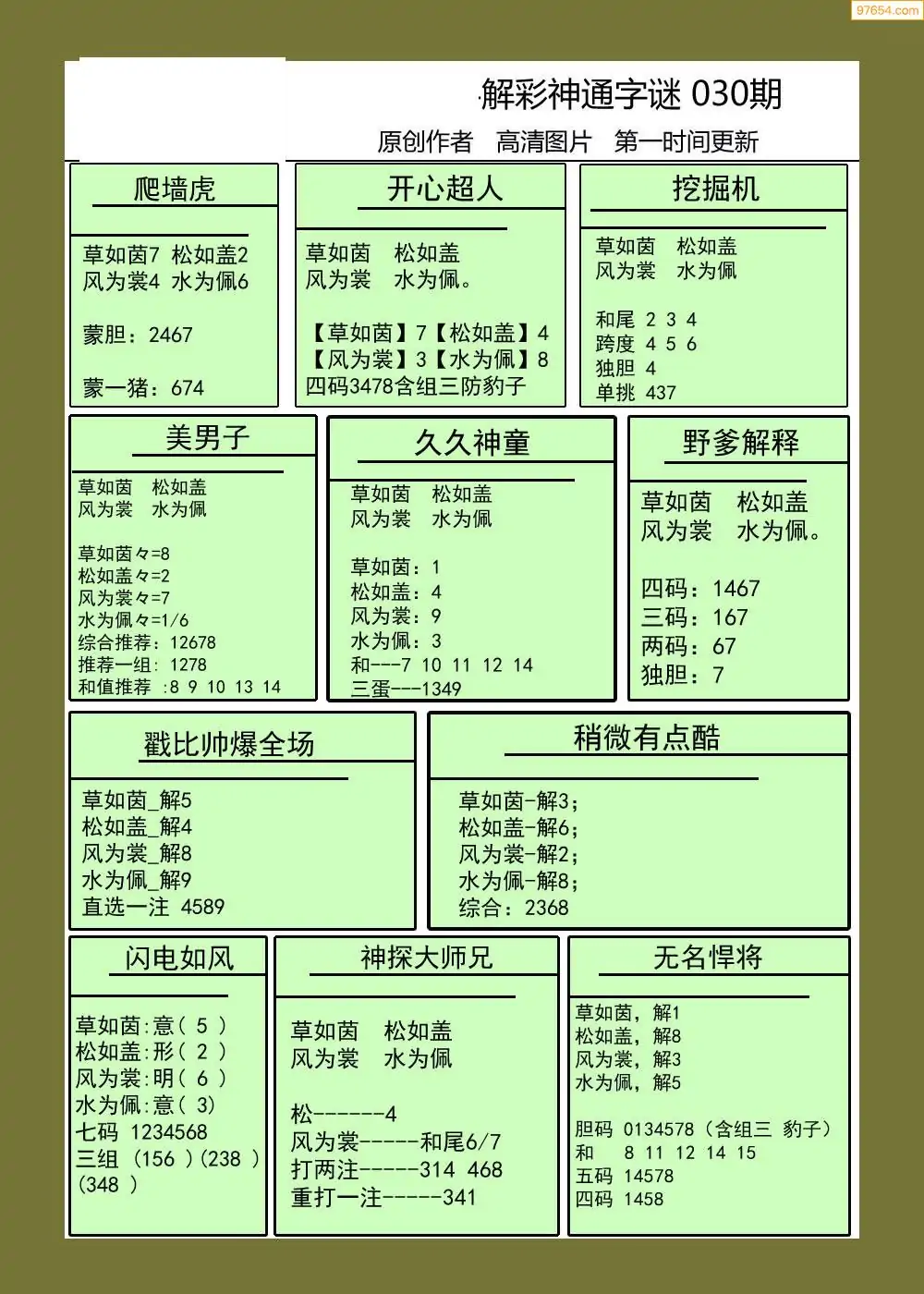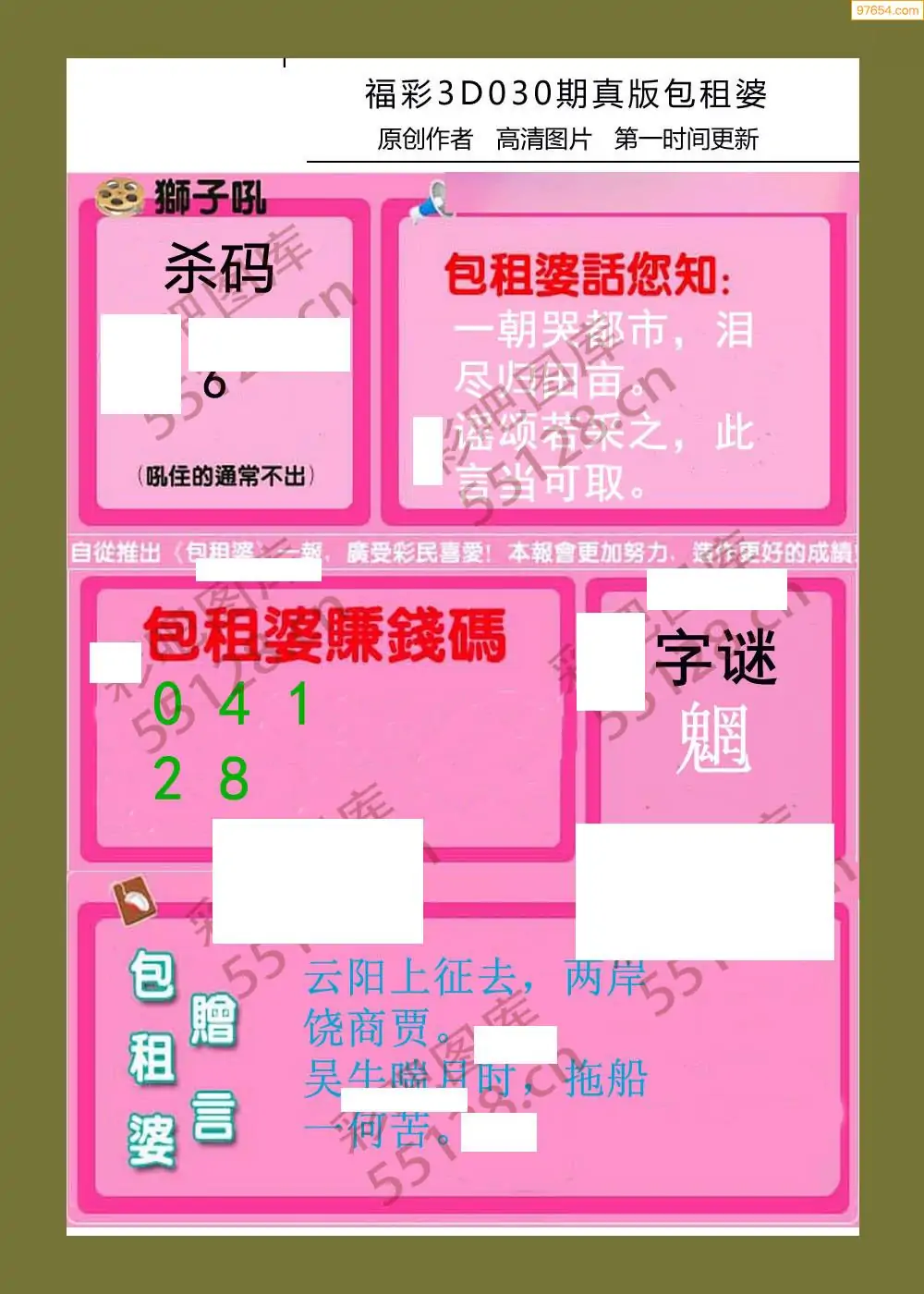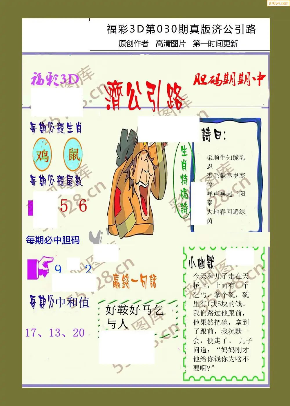 030期鑫马分析+杀手报3d图谜