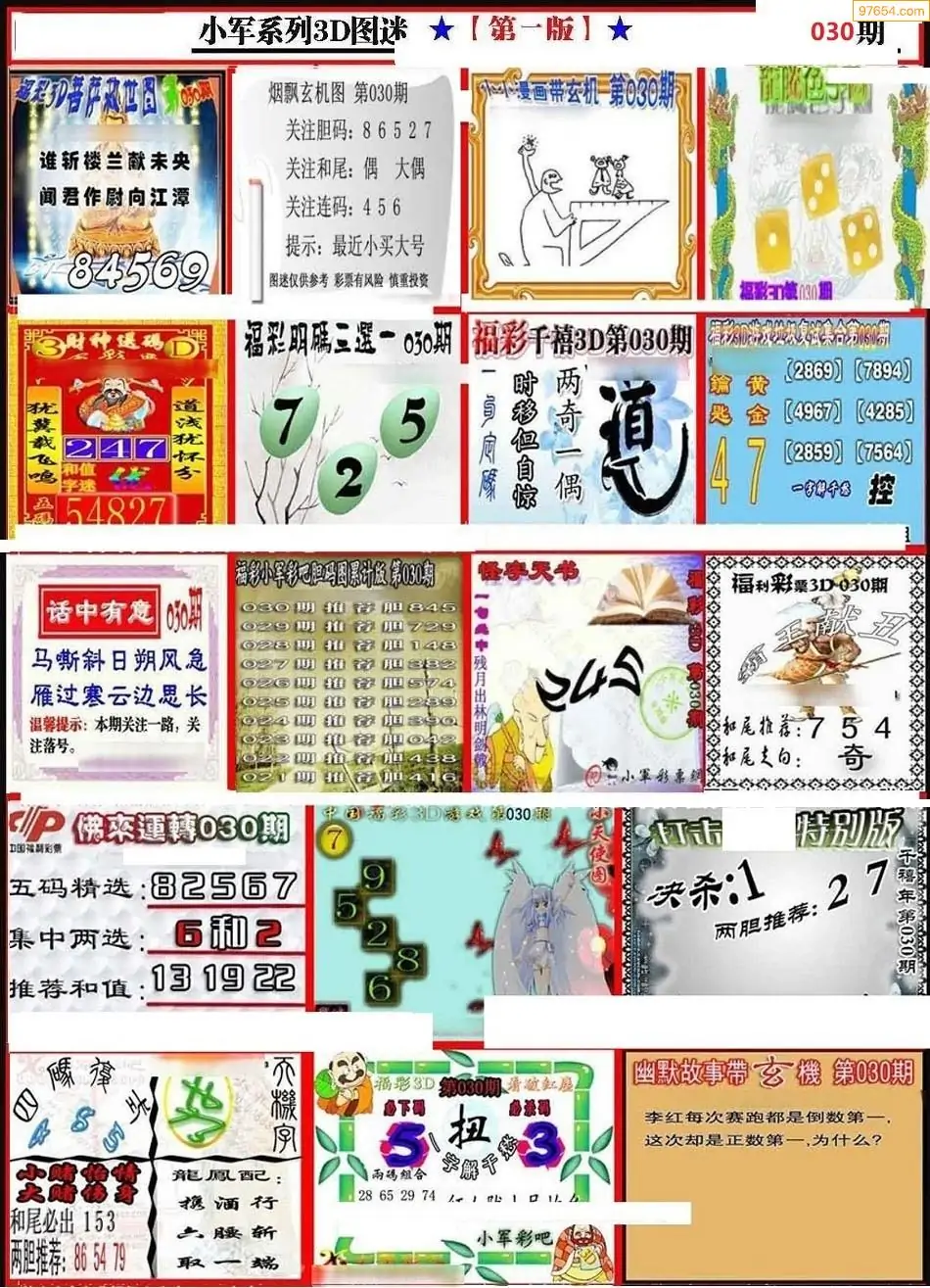 26030期小军系列四版彩报3d图迷