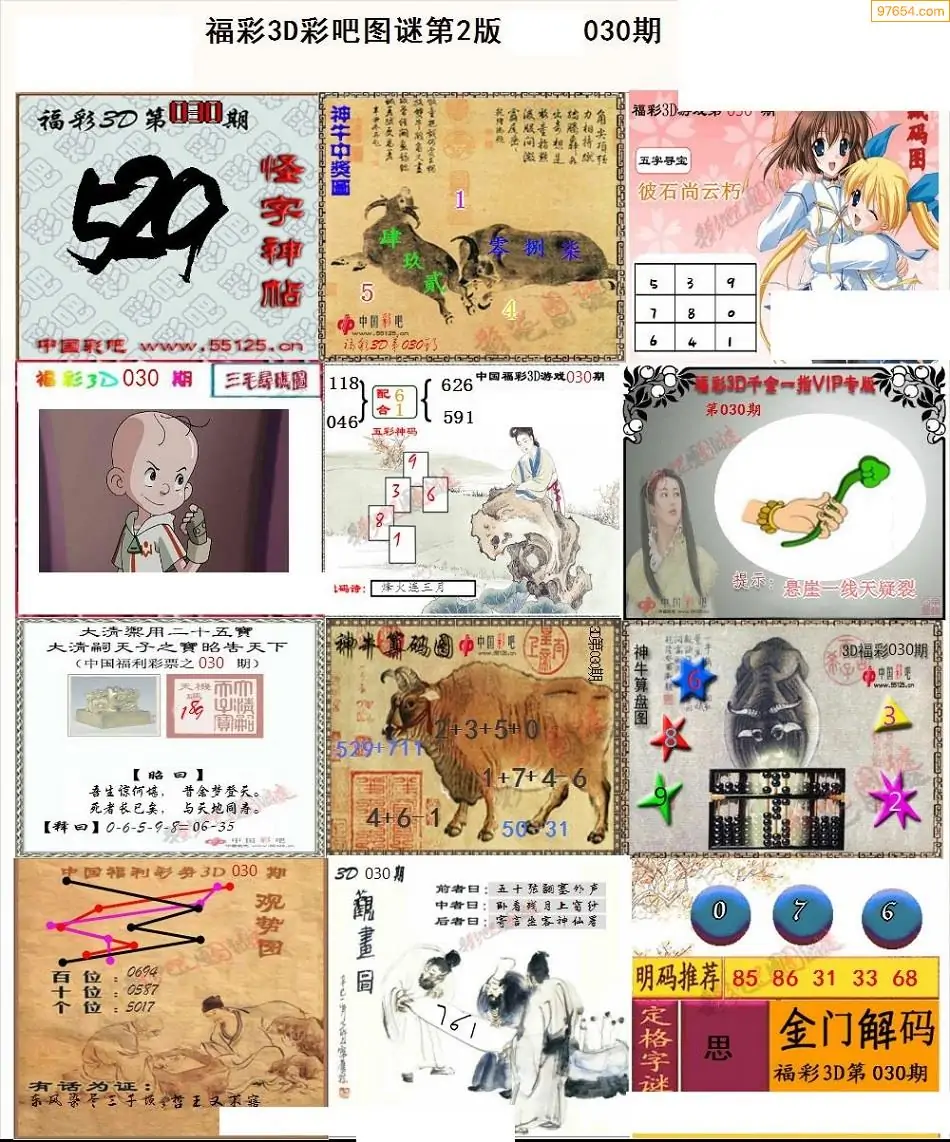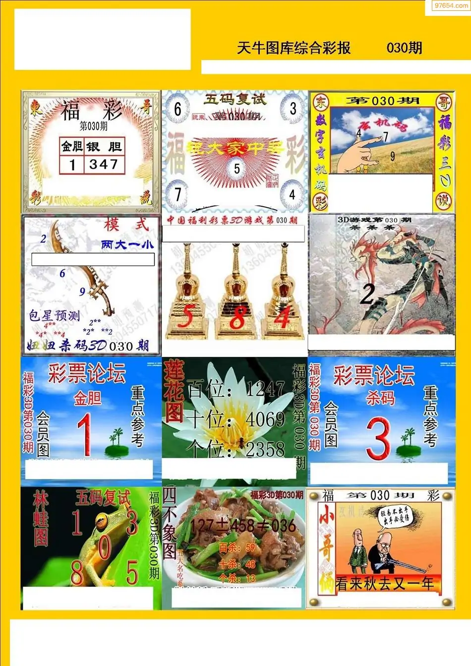 福彩3D030期天牛彩吧套图整合总汇