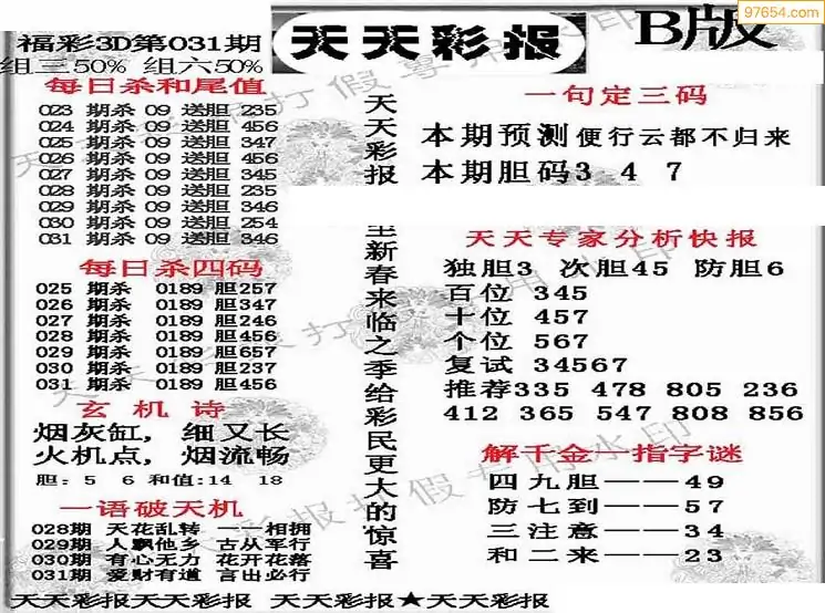 26年045期3d选号彩报图谜画谜