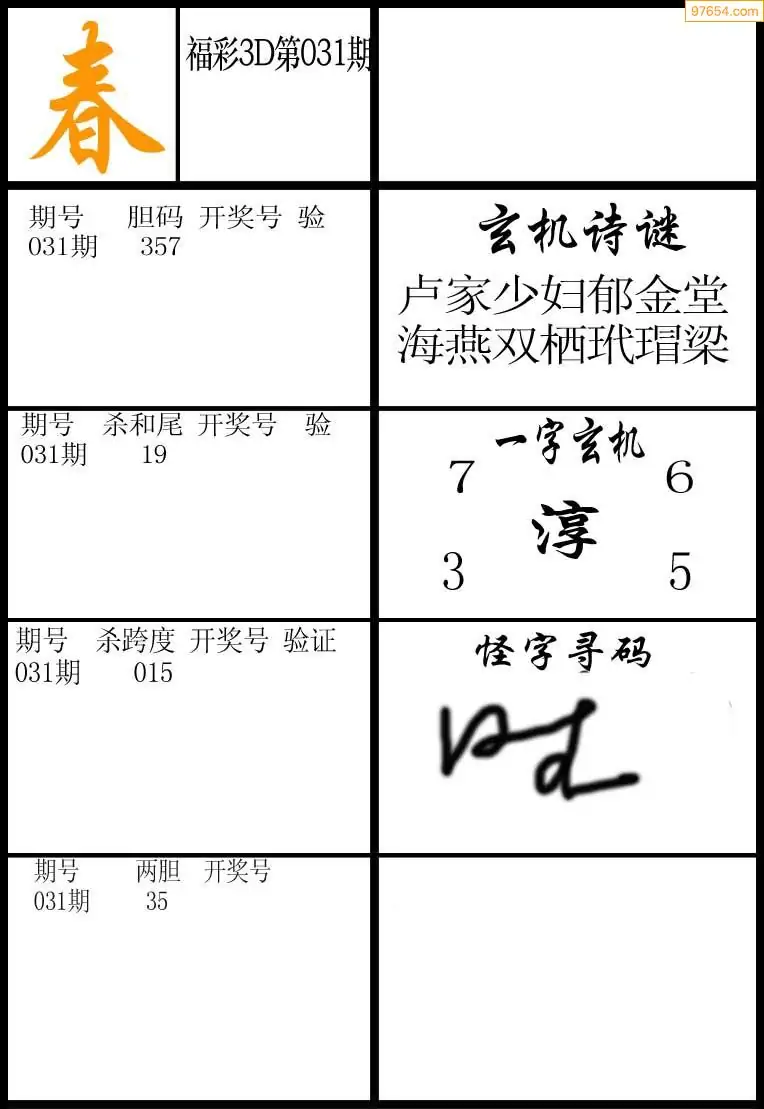 045期福彩天机壁怪字图